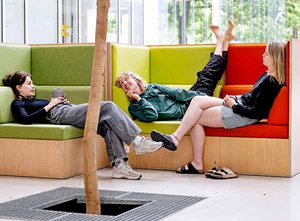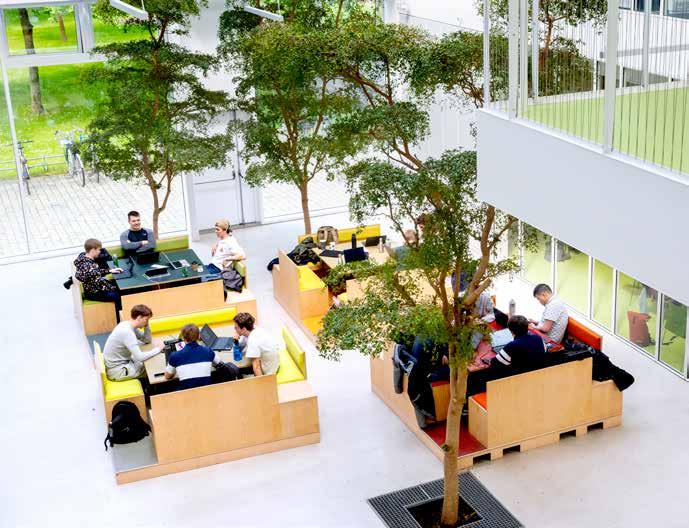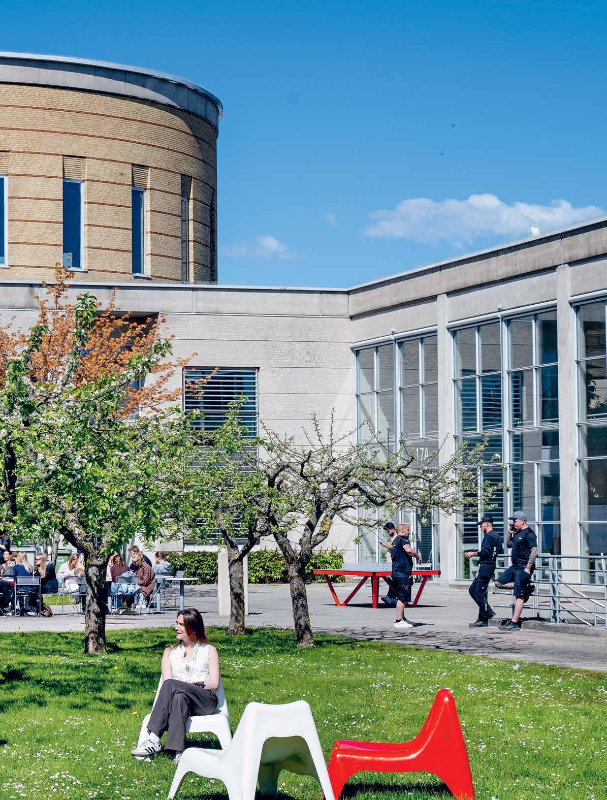 På Ballerup Campus tager studerende sig en velfortjent pause mellem studierne. Det kan f.eks. være studerende fra Innovation Pilot, der præsenterer deres idéer og koncepter for virksomheder, der søger nye perspektiver på tekniske udfordringer.