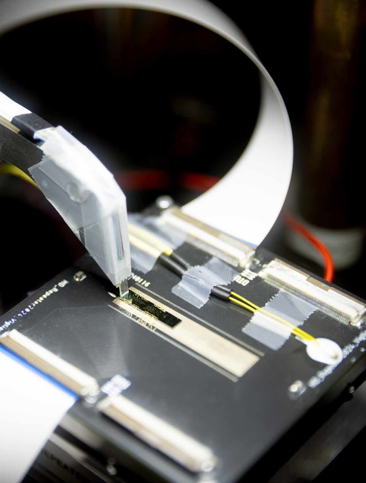 Seniorforsker Elizaveta Semenova fra DTU dyrker unikke nanokrystaller, der udsender fotoner direkte i telekommunikationsstandardens frekvensområde. Det betyder, at kvanteinformation kan sendes gennem eksisterende fiberkabler med minimale tab og uden behov for omdannelse af signalerne. I DTU Nanolab integrerer hendes team de skrøbelige kvantelyskilder i skalerbare chips ved hjælp af mikro transfer printing, som placerer hver enhed præcist dér, hvor den skal interagere med chippens kredsløb. Teknologien indgår i et stort europæisk samarbejde, hvor forskere lag for lag bygger de første kvantechips af sin slags.