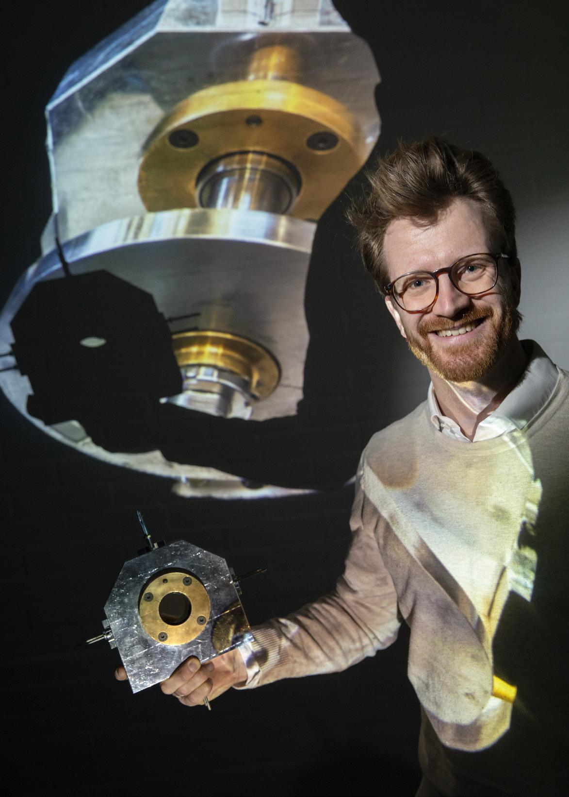 Ph.d.-studerende Janus JedigWalentin Jensen udvikler lejer, der ved hjælp af luft – ikke olie – får en maskines dele til at glide let og uden friktion.