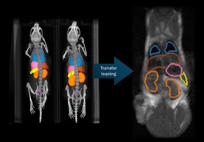 This project will address these challenges by developing an organ segmentation framework for preclinical MRI. The student(s) will curate and annotate an MRI dataset, adapt the existing CT-based nnU-Net model2 through transfer learning, and explore strategies such as cross-modality fine-tuning, contrastive representation learning, or synthetic data generation3. Performance will be evaluated in terms of segmentation accuracy, robustness across imaging conditions, and usability within CMI’s automated dosimetry pipeline. The results will clarify the role of MRI as a complementary or alternative modality to CT for automated organ segmentation in RLT research.