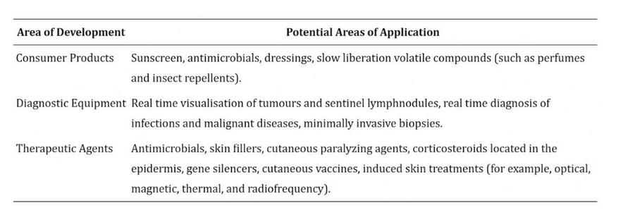 (Table by Nasir A. Nanodermatology: a glimpse of caution just beyond the horizon - part II Skin Therapy Lett 2010;15:4-7) - Areas of application for nanomolecules.
