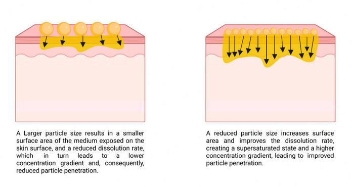 Meanwhile, nanoparticles have a size smaller than 100 Daltons. This means that they are able to travel deeper into the skin and target specific layers in order to maximise the effectivity of the treatment.