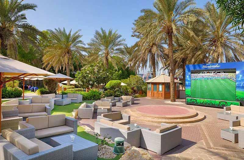 世界杯观赛地点 迪拜是举办世界杯粉丝节的六个城 市之一,BudX FIFA 球迷节是迪拜港的 官方球迷区,预计将有超过10000名球 迷聚集在一起观赛。 这里配备了定制的 330平方米大屏,将直播世界杯的所有 比赛。巴西天后Ludmilla、Shef Codes 先生、Kaboo 和 Flippside 等当地 DJ 将在赛前或赛后给大家表演节目。 迪拜媒体城圆形剧场将拥有阿联酋 最大的电视屏幕,这也是迪拜的官方球 迷区,这里将分为两部分,一个是家庭 区,可容纳1000人,另一个是球迷区, 可容纳5000名人,有300名工作人员 随时待命。现场将有10个酒吧、20个 食品卡车以及大屏幕来展示所有现场比 赛。 DIFC的足球公园将举办免费的户 外放映活动,每张桌子的消费为350 迪拉姆起;迪拜朱美拉希尔顿酒店的海 滩体育场将变成一个1600平方米的球 迷区,在11月20日启动。