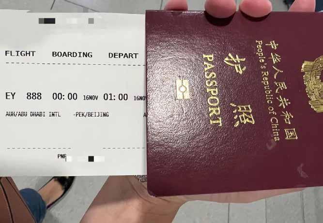 我和我6岁孩子的航班是11月16日的 EY888,阿布扎比起飞,飞往北京。