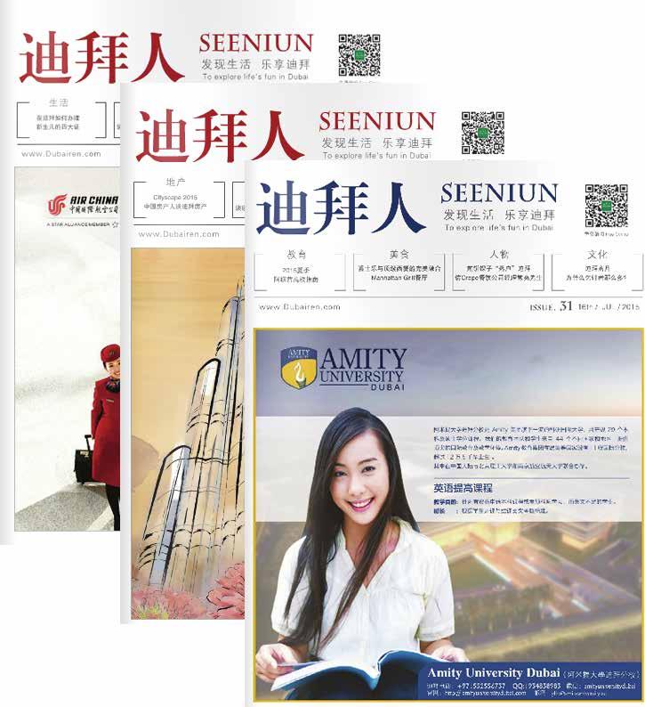 扫描二维码关注微信公共平台 随时获取迪拜最优质资讯 微信公共号:dubairen2009 Social Media 社交网络 网站:www.dubairen.com 分类信息:find.dubairen.com 中国区旅游 战略合作媒体 China Travel Strategic Cooperation Media 出版人 Publisher 王惠 Cathy Wang 主编 Chief Editor 毛一鸣 Yiming Mao 美编 Designer 杨小明 Dabigao 广告 Advertising 崔娜 Katrina 陶洁诚 Summer Tel: Fax: Mob: +971 4 4572002 +971 55 538 3063 +971 4 4572003 +971 55 5383063(Eng) +971 50 3594512(中文) Email:cathy@dubairen.com QQ: 108276309 Add: 3111-3112, Al Shatha Tower, Media city, Dubai, UAE. P.O.BOX:502081 Printed by: Al Nisr Publishing LLC P.O.Box: 6519. Dubai, United Arab Emirates Tel: +971 4 4067566 Email:gnprint@gulfnews.com 专栏: 18页 14页