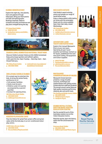 17L Camp Road, Dubbo p 0488 425 940 w tenbyobservatory.com/dubbo_ observatory