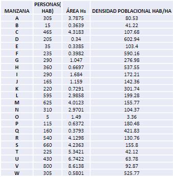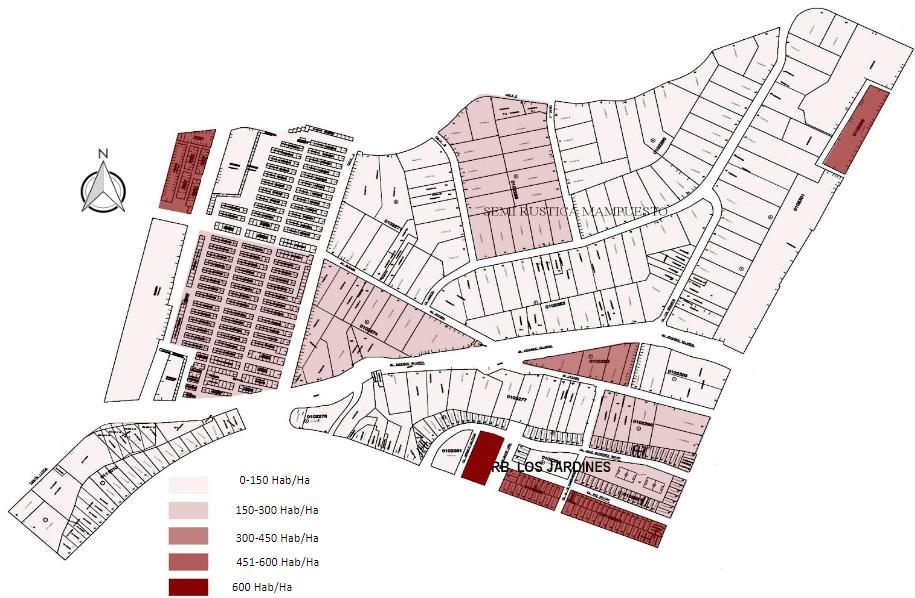 El sector presenta una zona residencial baja en donde se puede puede observar que el valor predominante es de 51250 hab/há.