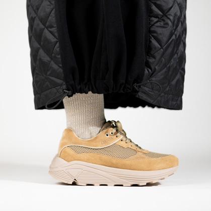 The AW23 collection is our first foray into crossover walking shoes that take us from nature to cityscape. The trialled and tested Vibram Rolling Gait System (RGS) sets the standard to what we believe is the key to enhancing the perfect gait cycle. The technology sets the tone for all future explorations in design and functionality. Our curiosity towards the hybridization between nature and city life is our main drive behind our design ideas and provides the context to our AW23 product catalogue.