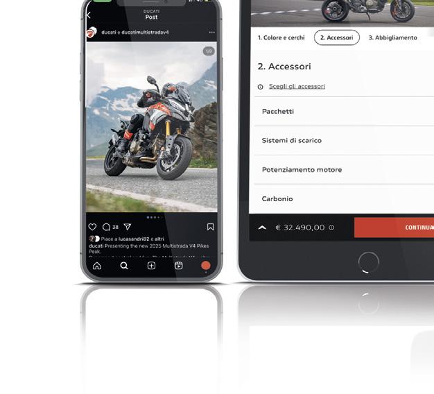 AVVERTENZA: le foto e le informazioni tecniche presenti su questo catalogo possono riferirsi a prototipi che possono subire delle modifiche in fase di produzione e hanno scopo puramente illustrativo e di riferimento, pertanto non sono vincolanti per Ducati Motor Holding S.p.A. Società a Socio Unico - Società soggetta all’attività di Direzione e Coordinamento di AUDI AG (“Ducati”). Ducati non risponderà di eventuali errori di stampa e/o traduzione. Il presente catalogo ha diffusione transnazionale ed alcuni prodotti possono non essere disponibili e/o le loro caratteristiche variare nel rispetto delle varie legislazioni locali. Non tutti i colori e versioni sono distribuiti in ogni Paese. Ducati si riserva il diritto di apportare modifiche e miglioramenti a qualsiasi prodotto, senza obbligo di preavviso o di effettuare tali modifiche su quelli già venduti.