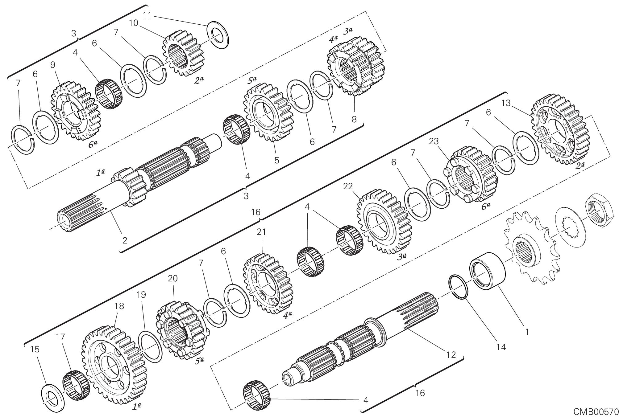 DRAWING 02A - SHIFT CAM - FORK GROUP ENGINE SPARE PARTS CATALOGUE 12/07/2022 Page 27 / 172 /23 D35000023 POS. CODE DESCRIPTION QTY VALIDITY NOTES 1 77151250ZF SCREW 1 2 71319151A SPACER 1 3 77150670ZF SCREW 1 4 79915061A SPRING, SHIFT RETURN 1 5 82114731A GEAR SELECTOR SHAFT 1 6 18020511A CONTROL FORK 1 7 71950538C SCREW 1 8 18210781A FLANGE 1 9 18220772A COMPLETE GEARBOX DRUM 1 10 55243911A MAGNETE 1 11 180Z0031A GEAR SELECTOR FORK,1ST/4TH-2ND/3RD 2 12 180Z0041A FORK-SHIFT, 5TH&6TH 1 13 82113881A FORK PIN 2 14 82120151A CONTROL FORK 1 15 735001542 CIRCLIP 15 DIN 471 1 16 82610261A STOPPER PLATE 1 17 040029126 THRUST WASHER 15.5X22X0.5 1 18 88110121A CENTERING RING 1 19 88450341B SPRING RING 1 20 79912961A RETURN SPRING 1 21 040009050 THRUST WASHER 10.5X16X0.5 1