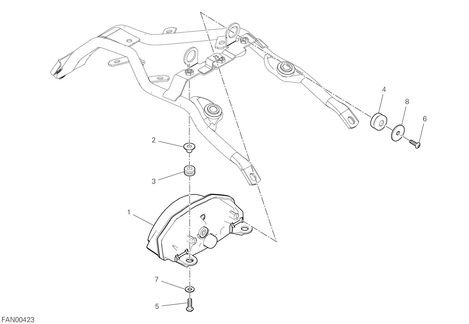 DRAWING 13B - TAILLIGHT GROUP ELECTRIC SPARE PARTS CATALOGUE 12/07/2022 Page 19 / 172 /23 D35000023 POS. CODE DESCRIPTION QTY VALIDITY NOTES 1 52510509A TAILLIGHT 1 2 71615261AA SPACER 2 3 76411671A RUBBER PAD 2 4 76412281A RUBBER PAD 2 5 77510171A SCREW TBEI M5X16 2 6 77440111A SCREW 2 7 85240131A WASHER 5.3X15X1 2 8 85241711A WASHER 2