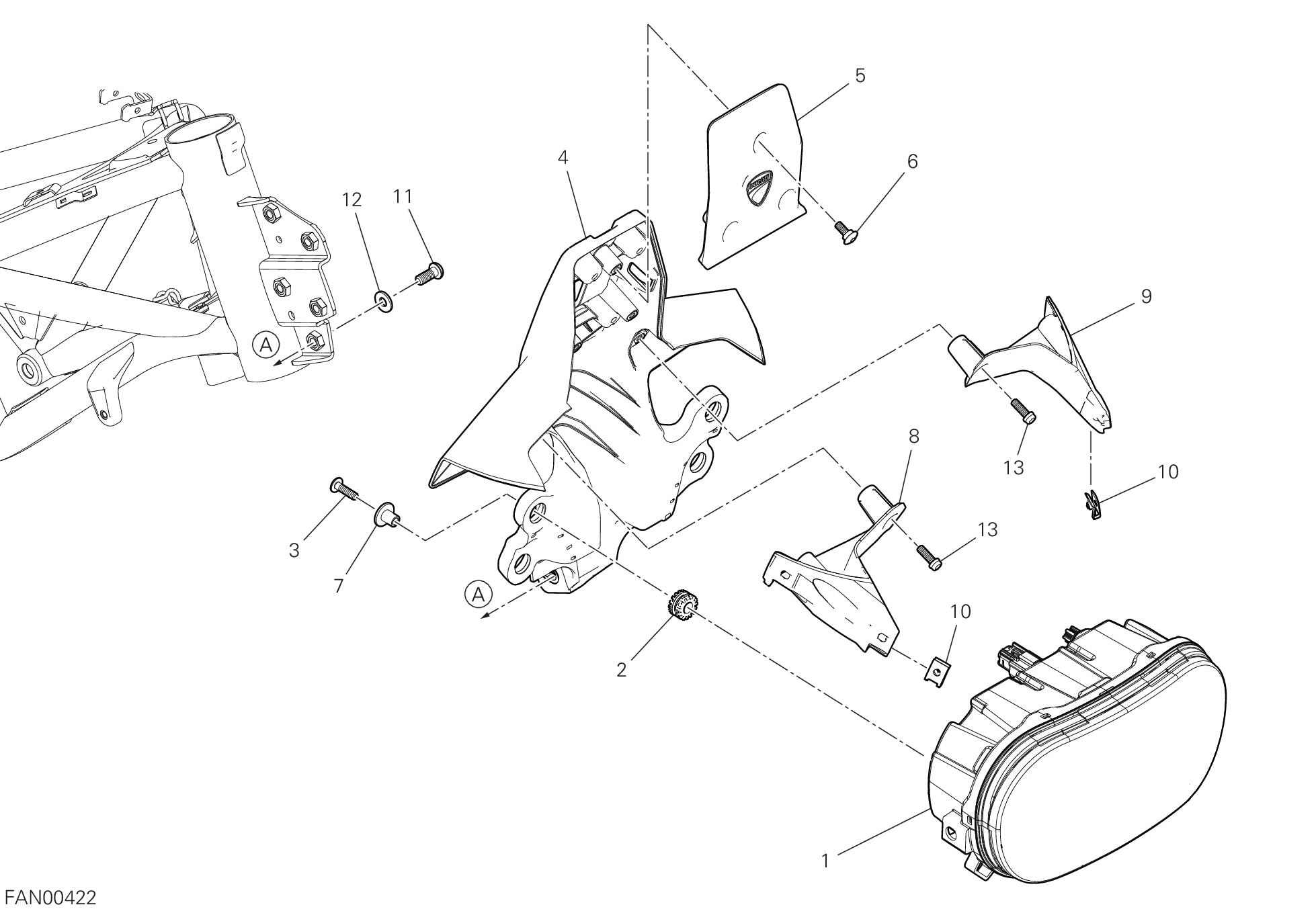 DRAWING 13A - HEADLIGHT GROUP ELECTRIC SPARE PARTS CATALOGUE 12/07/2022 Page 17 / 172 /23 D35000023 POS. CODE DESCRIPTION QTY VALIDITY NOTES 1 52010573A HEADLIGHT 1 52010581A HEADLIGHT 1 2 76410241A VIBRATION DAMPER PAD 4 3 77240453C SCREW TBEIF M6X22 10.9 4 4 8291N661B BRACKET, HEADLIGHT 1 5 4601M051B COVER 1 6 77211261B SCREW, SPECIAL 3 7 71610061A SPACER 4 8 8301B961A STAY, WINDSHIELD 1 9 8301B971A STAY, WINDSHIELD 1 10 85041031A NUT, SPRING M5 4 11 72010513C SCREW 3 12 85212031A WASHER 8.2X18X2 3 13 77110401B SCREW 4