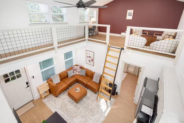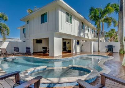 Have it all in a spacious 2-story beach home with 4 bedrooms and 3 bathrooms that comfortably sleeps 12 people, including a king-size bed, 2 queens, and 2 full/twin bunk beds. There are 2 large living/entertaining areas, one on each floor, and tons of outdoor living areas. The gem of the house is the tower deck that provides unobstructed, 360-degree views of the island, gulf, and bay. Bright natural lighting from windows in every room of the house.