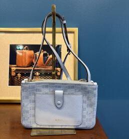 The Promenade is the perfect companion for your daily adventures! This blue crossbody bag features soft and iconic printed leather, has a front pocket, 2 pouches attached together, a zip closure, and a tone-on-tone adjustable cross body strap. The Promenade crossbody measures 8.6”x 5.5”x 1.5,” and is a perfect bag for your everyday use!