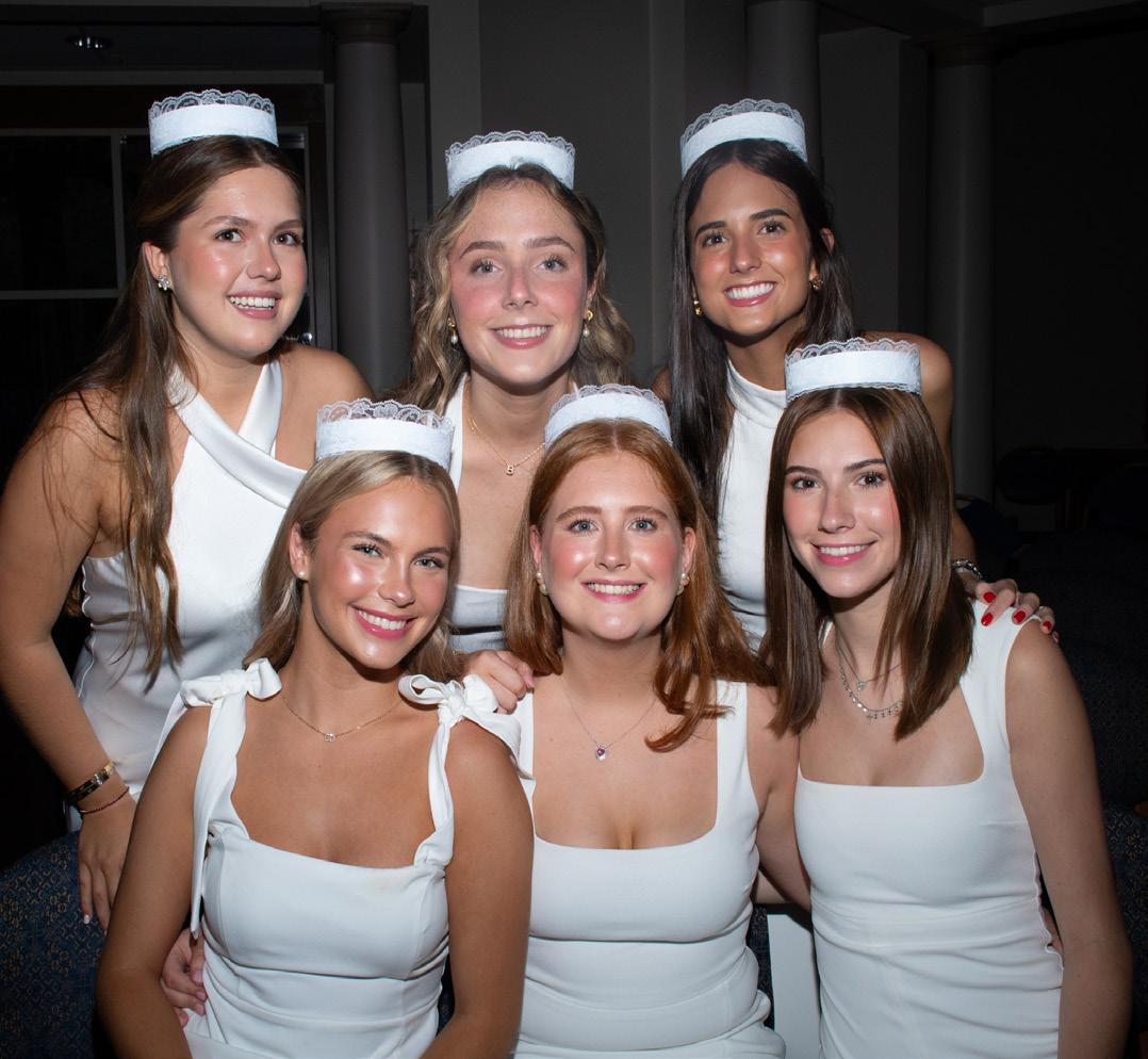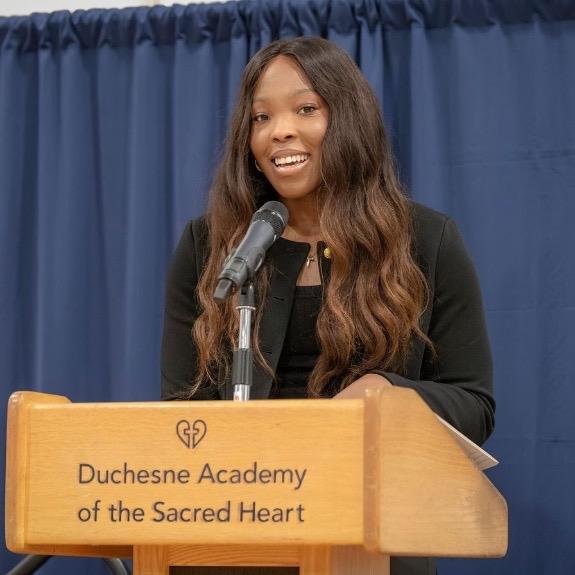 delighted in the excitement of learning. The group described your class as unexpected, as being connected, as opposites attract, and a mesh of personalities. They said that the 72 of you are charismatic, fun, full of tenacity. You get things done and are the perfect tornado who would be very missed. They also shared how much they wanted to stay in touch after graduation. Almost instantly, I saw myself in all of them. I saw my friends, my classmates in all of them. I am not afraid to talk. My friends and I are not afraid to disagree with people. We are not afraid to compliment people. We are open to new ideas and want to make whatever experiences we have better. We are Duchesne girls. When we met, this group of seniors showed me who they are and who you are as the Class of 2024. We share so many of the same qualities as Children of the Sacred Heart. These qualities are solidified by the traditions of Congé, powder puff football, Goûter, Espacio, senior pranks, and wearing that white crown. These qualities begin here at Duchesne. Every day, little by little, Duchesne girls absorb a type of “no fear” that I don’t see in others. So collectively, we are a product of the Goals.