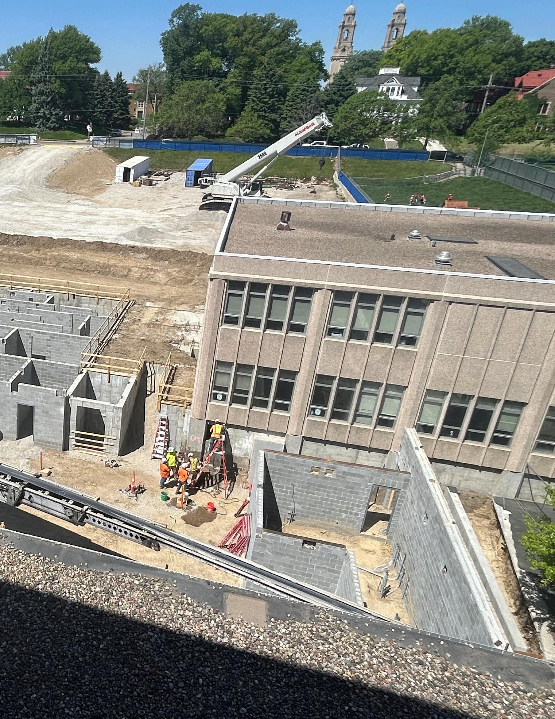 Addy Kula A’25 looks toward her future and the construction progress on Duchesne’s historic campus.