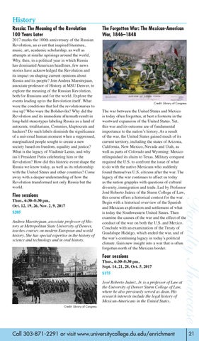 2017 marks the 100th anniversary of the Russian Revolution, an event that inspired literature, music, art, academic scholarship, as well as attempts at similar uprisings around the world. Why, then, in a political year in which Russia has dominated American headlines, few news stories have acknowledged the Revolution and its impact on shaping current opinions about Russia and its people? Join Andrea Maestrejuan, associate professor of History at MSU Denver, to explore the meaning of the Russian Revolution, both for Russians and for the world. Explore the events leading up to the Revolution itself. What were the conditions that led the revolutionaries to rise up? Who were the Bolsheviks? Why did the Revolution and its immediate aftermath result in long-held stereotypes labeling Russia as a land of autocrats, totalitarians, Commies, kleptocrats and hackers? Do such labels diminish the significance of a universal human moment when a suppressed, marginalized people sought to create a new society based on freedom, equality and justice? What is the legacy of Vladimir Lenin, and why isn’t President Putin celebrating him or the Revolution? How did this historic event shape the Russia we know today, as well as its relationship with the United States and other countries? Come away with a deeper understanding of how the Revolution transformed not only Russia but the world.