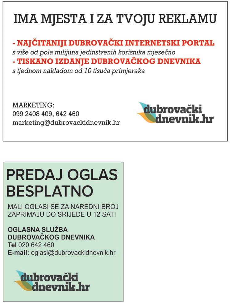 Mali oglasi oglasi@dubrovackidnevnik.hr