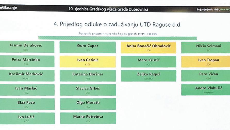 Gradsko je vijeće sa 16 glasova za i tri suzdržana usvojilo akte temeljem kojih će UTD Ragusa kupiti dionice društva TUP. Tako su dali suglasnost za sklapanje kredita između Erste banke i UTD Raguse