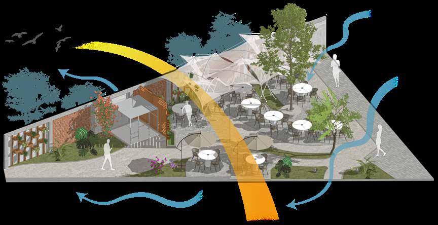 Tambien la vegetación planteada aportara a ruducir la radiación solar oxigenando el ambiente.
