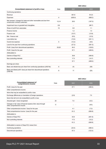 PricewaterhouseCoopers Limited is registered with the Dubai Financial Services Authority 58 Independent auditor’s report to the shareholders of Depa PLC Report on the audit of the consolidated financial statements Our qualified opinion In our opinion, except for the possible effects of the matter described in the Basis for qualified opinion section of our report, the consolidated financial statements presents fairly, in all material respects, the consolidated financial position of Depa PLC (the “Company”) and its subsidiaries (together the “Group”) as at 31 December 2021, and its consolidated financial performance and its consolidated cash flows for the year then ended in accordance with International Financial Reporting Standards. What we have audited The Group’s consolidated financial statements comprise: ▪ the consolidated statement of profit or loss for the year ended 31 December 2021; ▪ the consolidated statement of comprehensive income for the year then ended; ▪ the consolidated statement of financial position as at 31 December 2021; ▪ the consolidated statement of changes in equity for the year then ended; ▪ the consolidated statement of cash flows for the year then ended; and ▪ the notes to the consolidated financial statements, which include significant accounting policies and other explanatory information. Basis for qualified opinion
