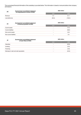 PricewaterhouseCoopers Limited is registered with the Dubai Financial Services Authority 58 Independent auditor’s report to the shareholders of Depa PLC Report on the audit of the consolidated financial statements Our qualified opinion In our opinion, except for the possible effects of the matter described in the Basis for qualified opinion section of our report, the consolidated financial statements presents fairly, in all material respects, the consolidated financial position of Depa PLC (the “Company”) and its subsidiaries (together the “Group”) as at 31 December 2021, and its consolidated financial performance and its consolidated cash flows for the year then ended in accordance with International Financial Reporting Standards. What we have audited The Group’s consolidated financial statements comprise: ▪ the consolidated statement of profit or loss for the year ended 31 December 2021; ▪ the consolidated statement of comprehensive income for the year then ended; ▪ the consolidated statement of financial position as at 31 December 2021; ▪ the consolidated statement of changes in equity for the year then ended; ▪ the consolidated statement of cash flows for the year then ended; and ▪ the notes to the consolidated financial statements, which include significant accounting policies and other explanatory information. Basis for qualified opinion