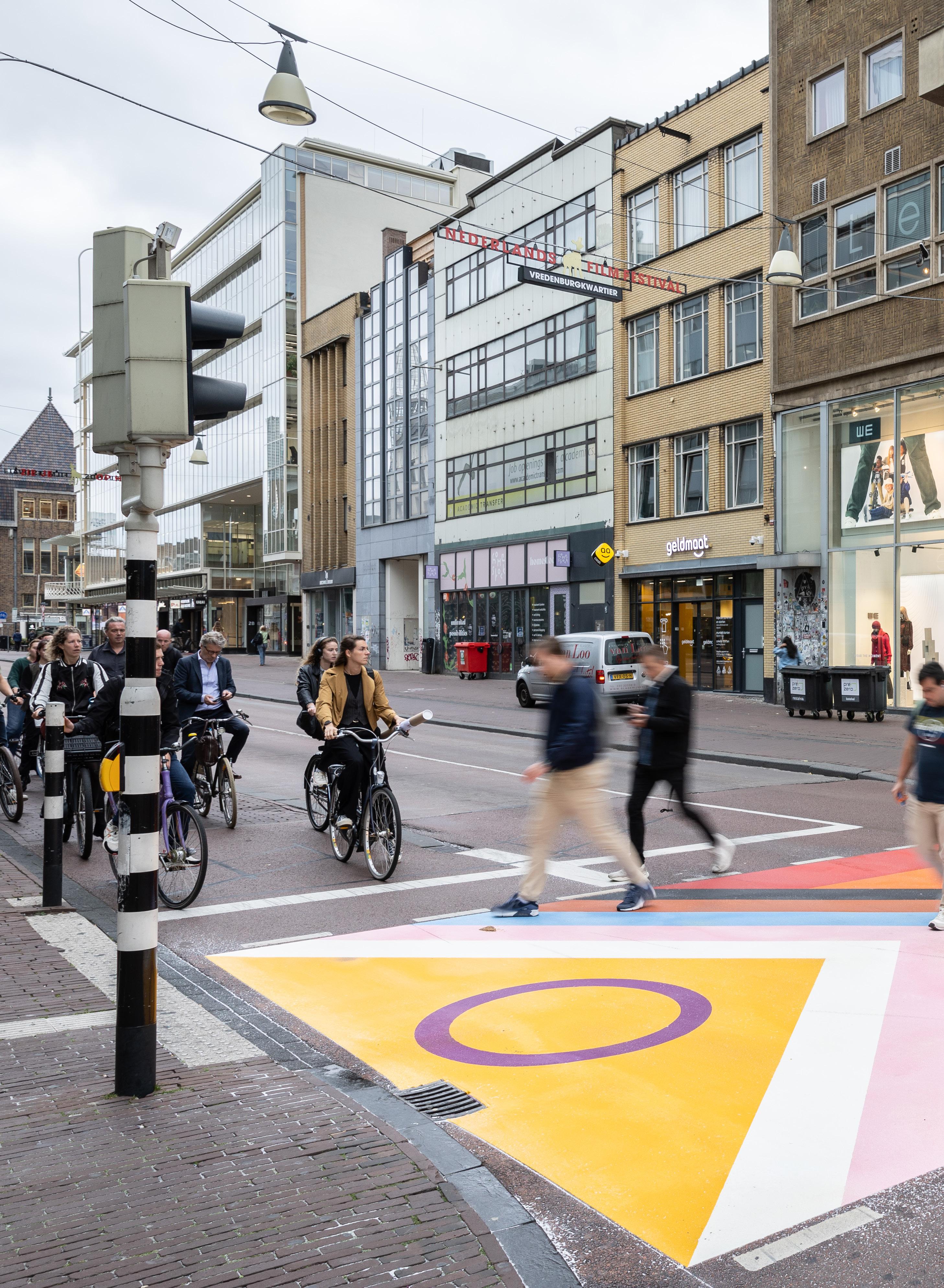 Ruim tien jaar geleden, op 21 juni 2013, werd het regenboogpad, dat tussen het Vredenburgplein en de Lange Viestraat lag, onthuld op Roze Zaterdag. Sinds deze week ligt op deze oversteekplek een pad in de kleuren van de LHBTIQ+-vlag. In april van dit jaar gaven de GroenLinks-raadsleden Pepijn Zwanenberg en Melody Deldjou Fard aan dat zij het tijd vonden om het regenboogpad in een nieuw jasje te steken, en dat is nu gedaan. Eerder gaf Zwanenberg, die ook al initiatiefnemer van het originele regenboogpad was,
