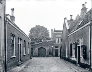 Toegangspoort naar de vrijwoningen van de Fundatie Metelerkamp, Het Achterom en Nieuwekamp. (Onbekende fotograaf, 1934)