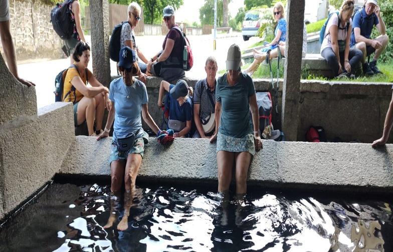 Caldas is heel bekend bij botanici. Het park van de oever van de rivier Umia, in het centrum van de stad herbergt niet minder dan een 70 tal boomsoorten die afkomstig zijn uit de 5 continenten. In de Romeinse periode warende warmwaterbronnen ook al heel fameus. Nog steeds is Caldas ( letterlijk warm water ) een belangrijk thermaal oord. Nu nog konden we er na de wandeling “pootje baden“ in één van de warmwaterbronnen. Heerlijk na zo een fikse wandeling. Het water heeft zo een 45 graden.