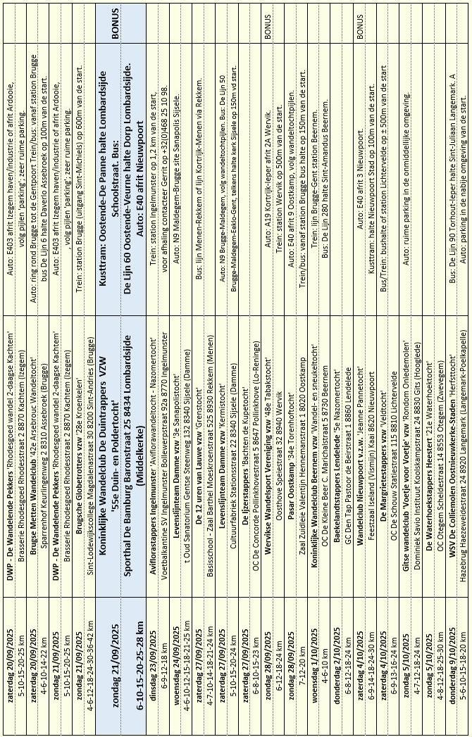 Onze Duin- en Poldertocht gaat door op zondag 21 september vanuit de Sporthal “De Bamburg” in Lombardsijde. Dit is een Bonustocht waar, zowel als verdienstelijk lid als voor het clubkampioenschap WSVL, extra punten te verdienen zijn. We rekenen op jullie aanwezigheid!