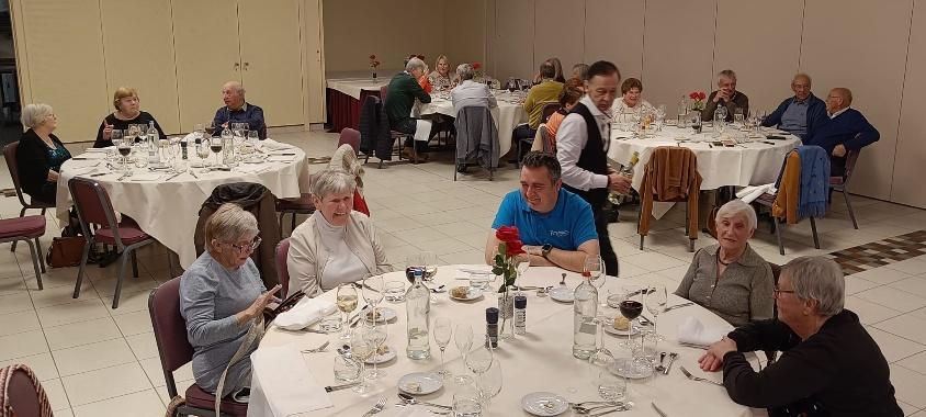 Ons jaarlijks clubfeest op 22/02/2025 in de ruime feestzaalvan het hotel Royal Astrid viel ook bij alle deelnemers in de smaak. Er werd genoten vande vriendschap, het lekkere eten en de ambiance gebracht door onze entertainer William. Ook aan onze maandelijkse clubwandeling en Duintrappersklets namen telkens meer dan 20 leden deel.
