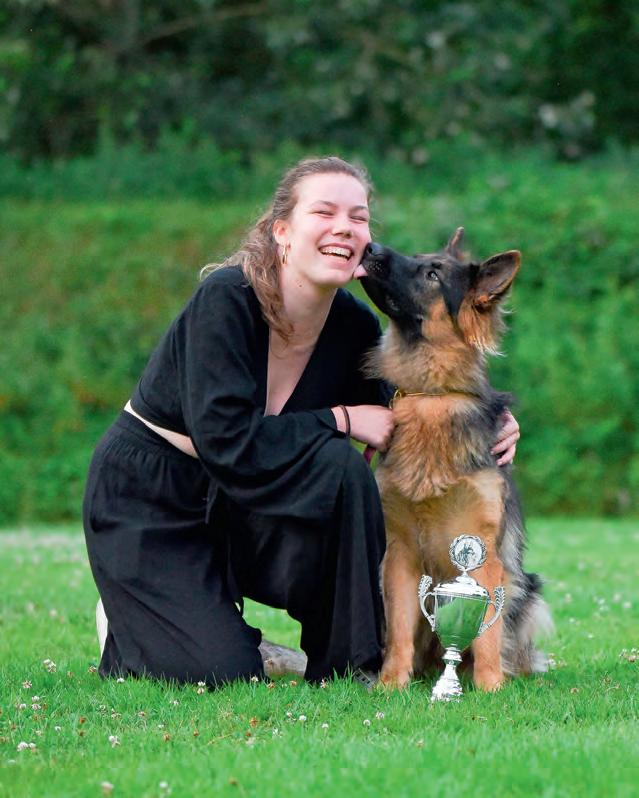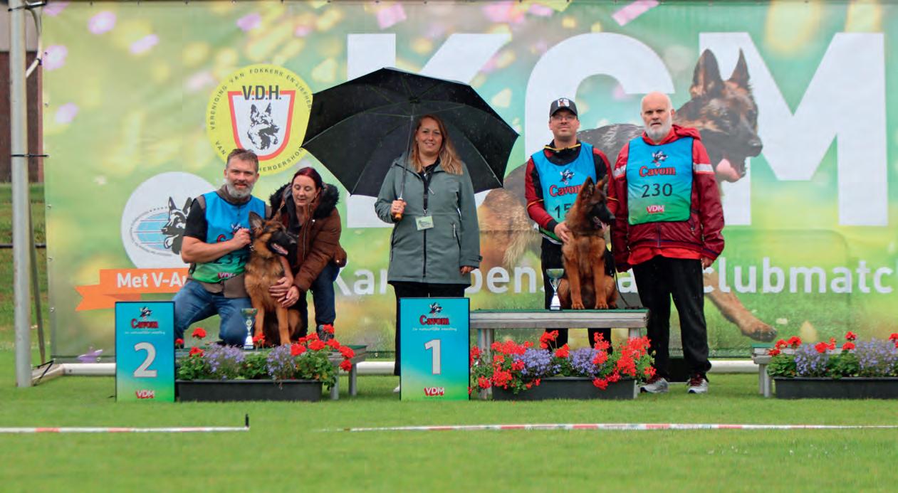 Zo begon dus haar avontuur binnen de VDH. Bij deze hond (Vito vom Mattenburchenland) moest zij hard werken om hem te activeren, aangezien hij niet zo gek was op een balletje. Bij de volgende hond zou ze deze fout natuurlijk niet meer maken, dus Lancer van de Thornsemolen kwam. Deze hond had echter iets meer pit dan Vito, waardoor hij als pup iedere ochtend al bij Klara in haar broekspijpen hing. De activering met een bal was bij deze hond dus niet nodig, sterker nog… bij deze hond had Klara een muilkorf nodig bij ringtrainingen, want wanneer de hond er genoeg van had, besloot hij zichzelf met een hapje van Klara te belonen. Zodra de training dan voorbij was, kon de muilkorf af en kreeg hij zijn dikverdiende bal. Gelukkig was dit niet haar eerste hond, geeft zij aan, want dan had ze die waarschijnlijk wel weg moeten doen. Hierna kwamen Comboy Fan’e Lyntje Snyders, Cas Cooper van de Moezenbulte, Quando van Hamersslag