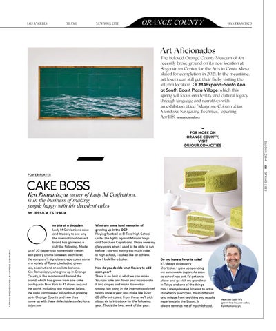 ne bite of a decadent Lady M Confections cake and it’s easy to see why the international dessert brand has garnered a cult-like following. Made up of 20 paper-thin homemade crepes with pastry creme between each layer, the company’s signature crepe cakes come in a variety of flavors, including green tea, coconut and chocolate banana. Ken Romaniszyn, who grew up in Orange County, is the mastermind behind the brand, which has grown from one cake boutique in New York to 47 stores around the world, including one in Irvine. Below, the cake connoisseur talks about growing up in Orange County and how they come up with these delectable confections. ladym.com