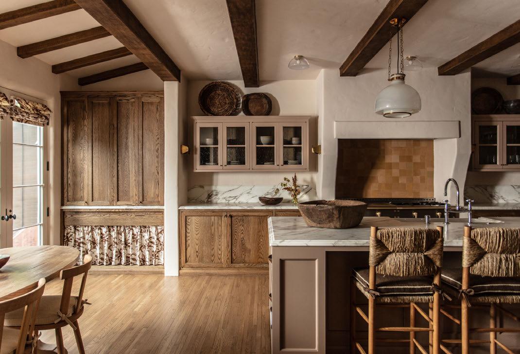 point of view. Entering the space is a transportive experience; you feel that it lifts and holds you.” Organic materials are used throughout the interior, from parquet flooring in European white oak with rosa corallo stone to polished plaster and woven raffia fringe walls, 1970s Carlo Scarpa Cornaro armchairs and Ingo Maurer Uchiwa wall lights. ullajohnson.com