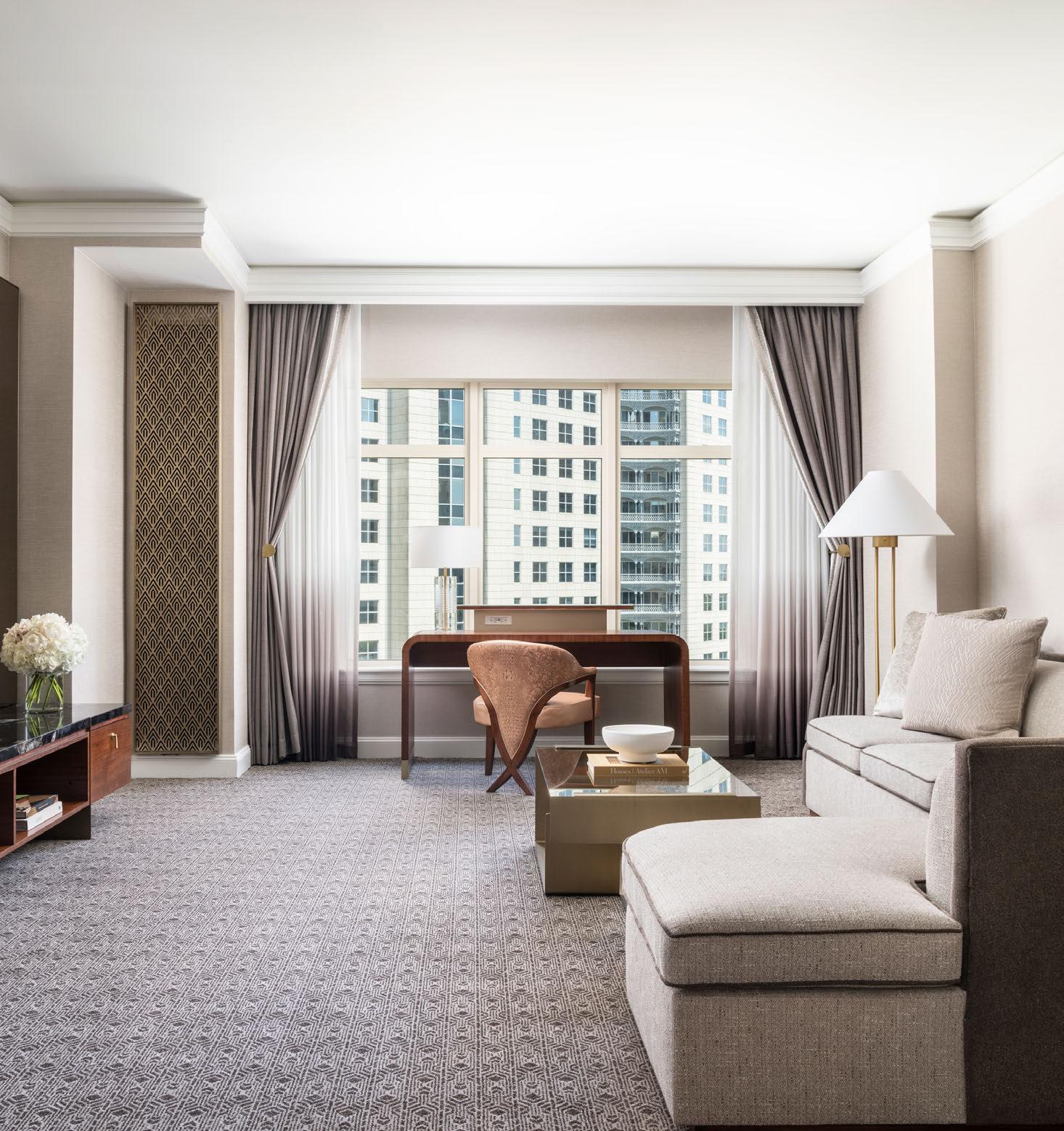 Developed by Magellan Development Group and designed by Studio Gang, the new St. Regis has opened in the Lakeshore East neighborhood. Its 159 luxurious guest rooms and 33 exquisite suites, spread across 11 floors, feature a thoughtfully curated palette of natural stone and wood finishes. “The debut of the St. Regis Chicago signals a significant milestone for the St. Regis brand as we grow our footprint in the United States and celebrate our first property in the American Midwest,” says brand vice president George Fleck. The tower’s crystalline form was inspired by nature, with facets like a shimmering gem and a gradient of green-blue glass that reflects the colors of Lake Michigan and the Chicago River. With public interiors by KTGY Simeone Deary Design Group and guest rooms by Gensler, the aesthetics are modern and residential in style. Local restaurant group Lettuce Entertain You is operating two restaurants onsite: Miru, an all-day Japanese restaurant from chef Hisanobu Osaka designed by the Rockwell Group, and Tuscan steakhouse Tre Dita from chef Evan Funke, which will feature fresh, handmade pasta and classic Italian cuts like bistecca Fiorentina cooked on a wood-fired grill. Funke’s first restaurant outside of Los Angeles, Tre Dita is designed by David Collins Studio. The spa and fitness center spans 12,000 square feet and features an outdoor sundeck, yoga studio and a heated indoor pool offering stunning views of the city and Lake Michigan. The hotel is adjacent to the Residences at The St. Regis Chicago, which consists of 393 condominiums and offers residents access to all of the hotel amenities in addition to its own residents-only amenity floor. marriott.com