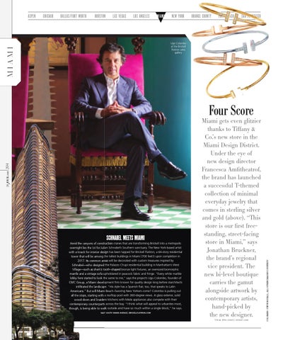 Miami gets even glitzier thanks to Tiffany & Co.’s new store in the Miami Design District. Under the eye of new design director Francesca Amfitheatrof, the brand has launched a successful T-themed collection of minimal everyday jewelry that comes in sterling silver and gold (above). “This store is our first freestanding, street-facing store in Miami,” says Jonathan Bruckner, the brand’s regional vice president. The new bi-level boutique carries the gamut alongside artwork by contemporary artists, hand-picked by the new designer. 114 NE 39TH STREET; TIFFANY.COM