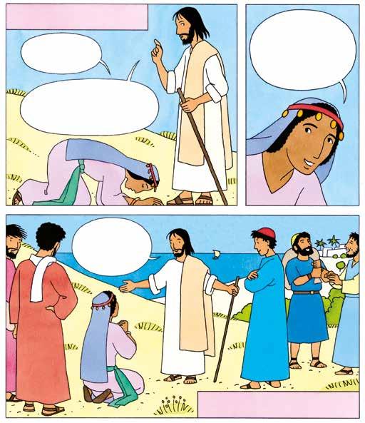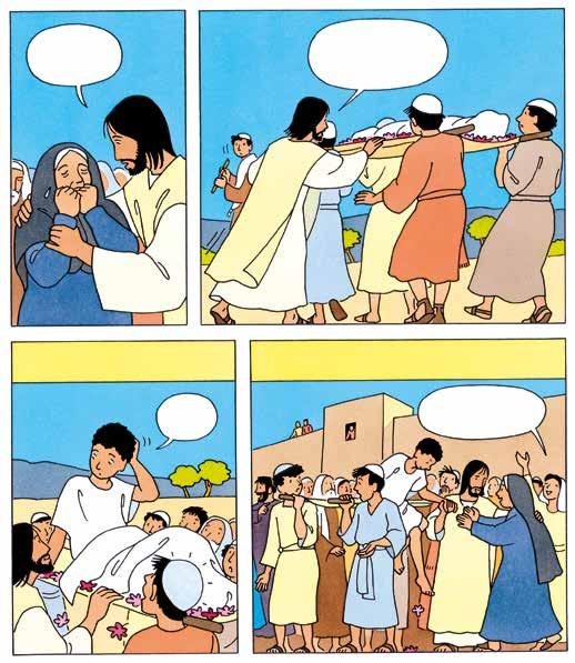 Tegneserien “Les Miracles de Jésus en BD“ af Christine Ponsard & Jean-François Kieffer er gengivet med tilladelse af Fleurus Editions Mame.