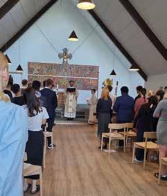 At folk kommer sammen og glædes ved deres tro.