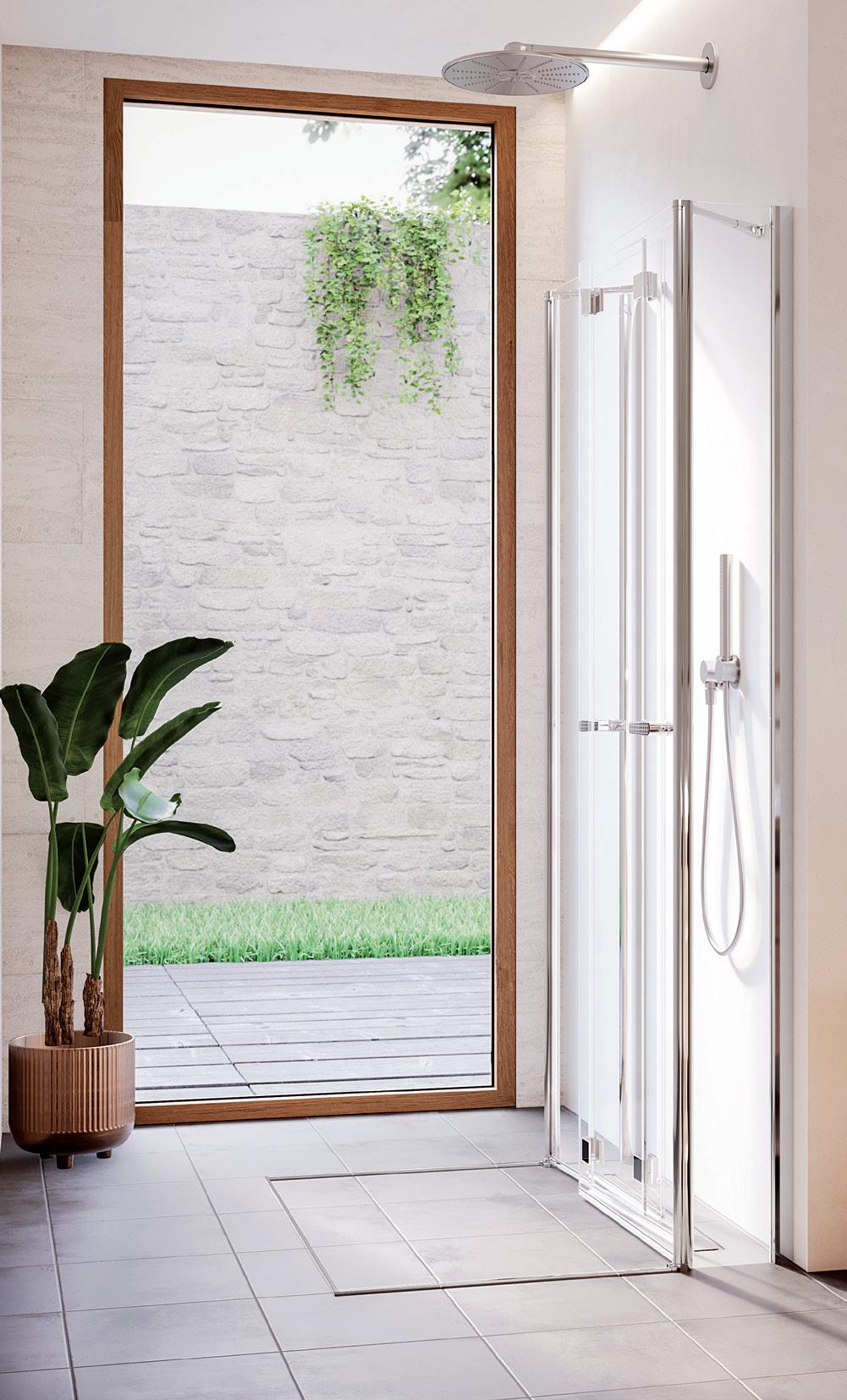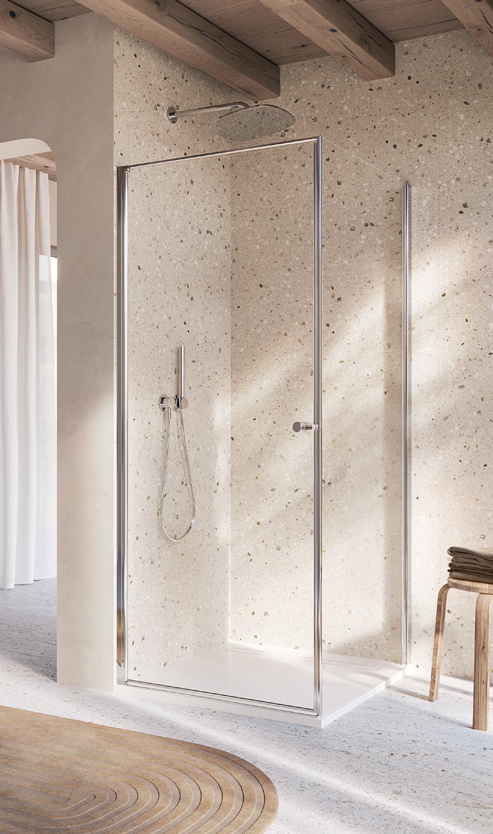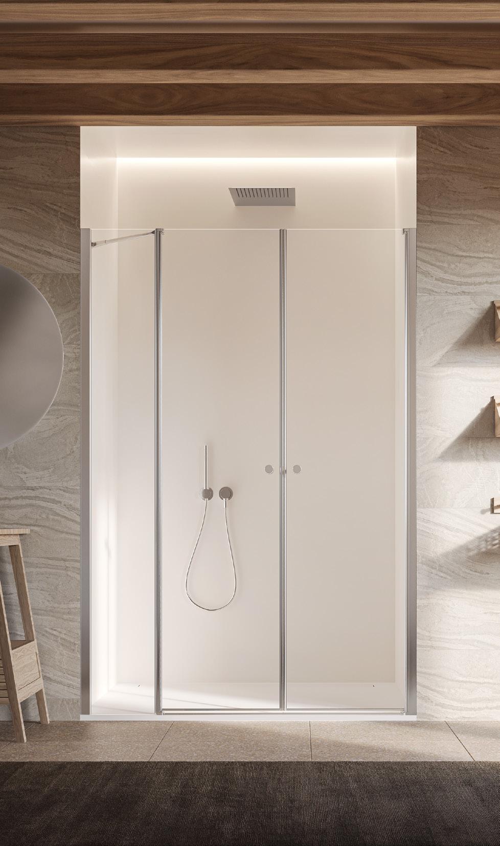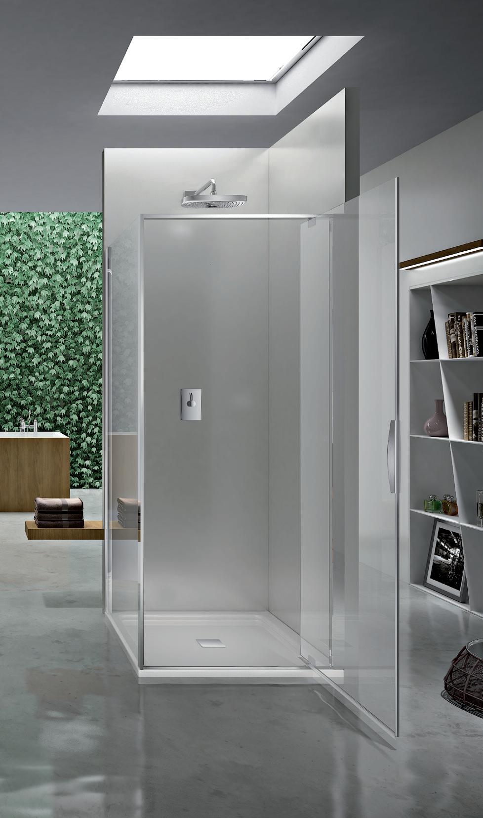 The 180° hinge guarantees absolute flexibility and comfort: the shower enclosure can be opened fully towards both inside and out.