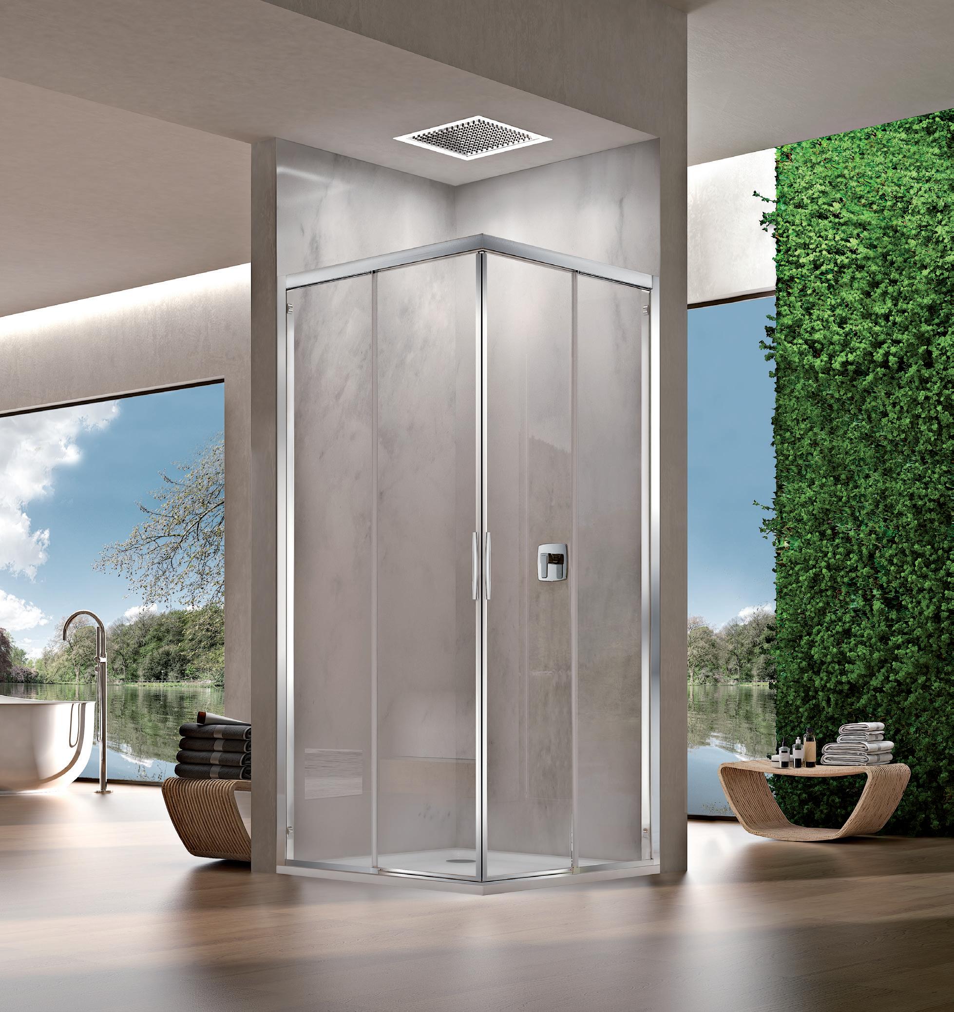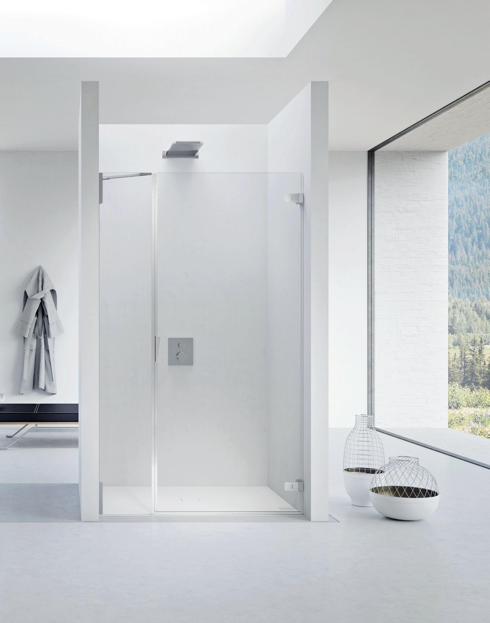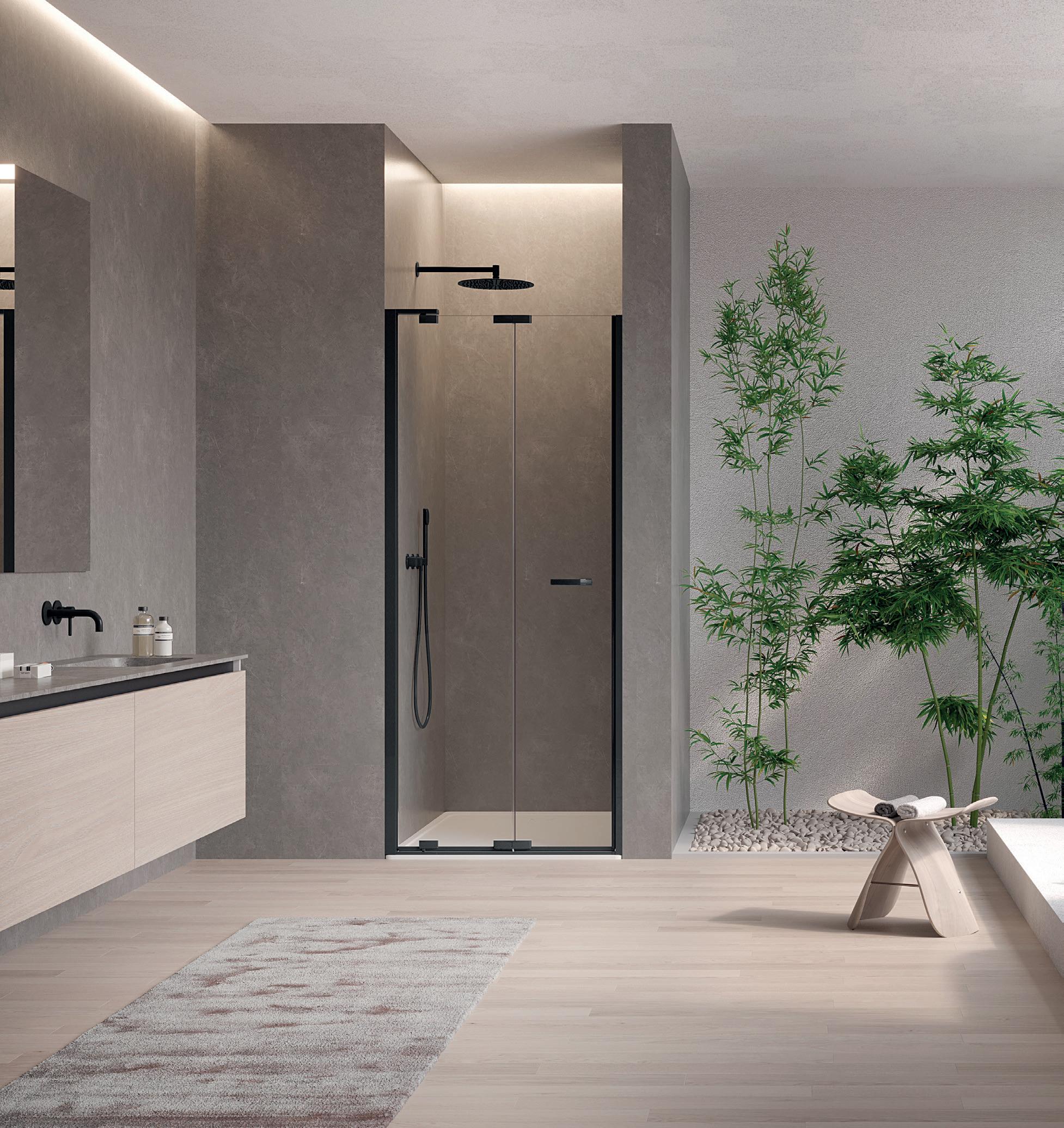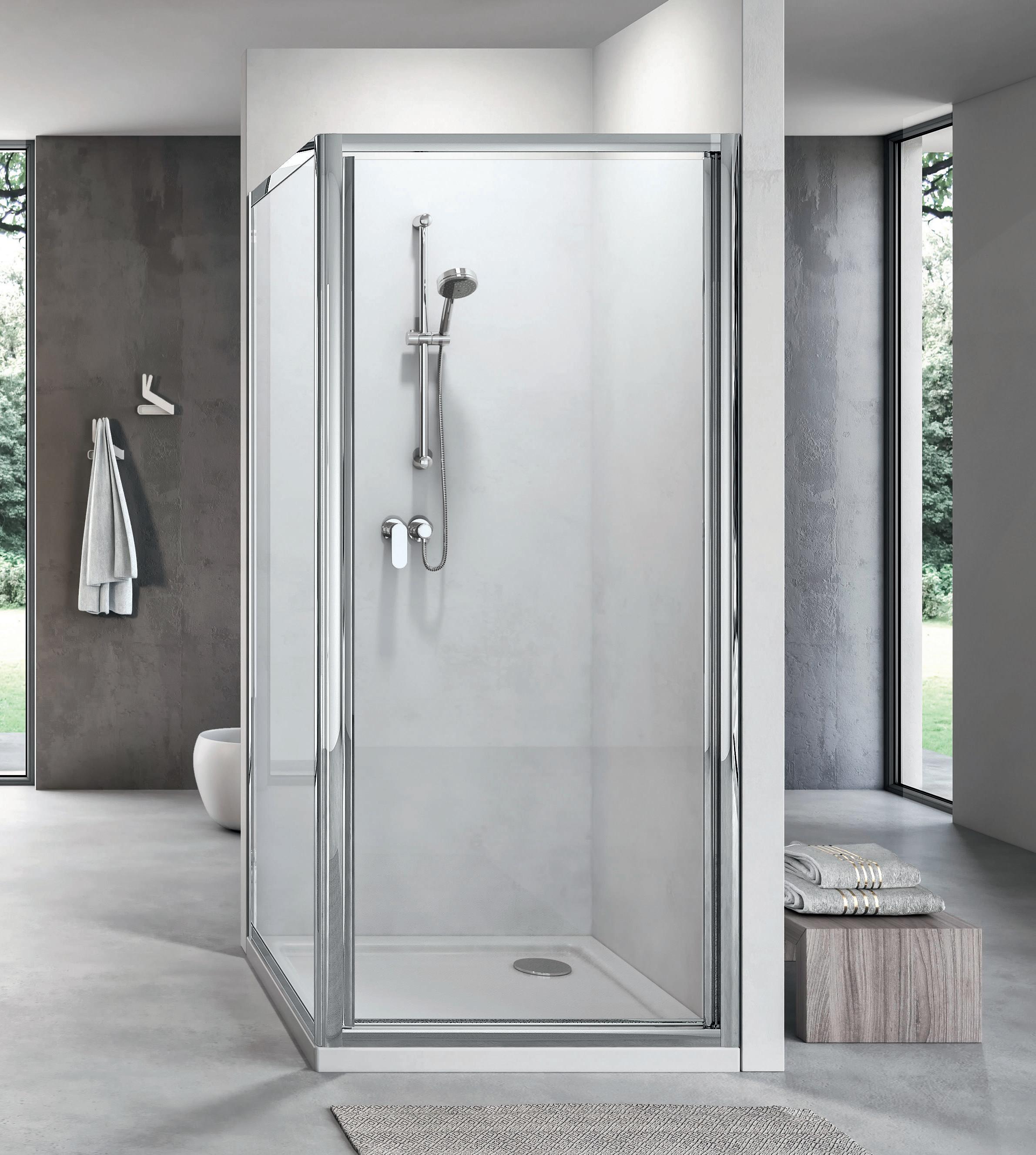 The 180° hinge guarantees absolute flexibility and comfort: the shower enclosure can be opened fully towards both inside and out.