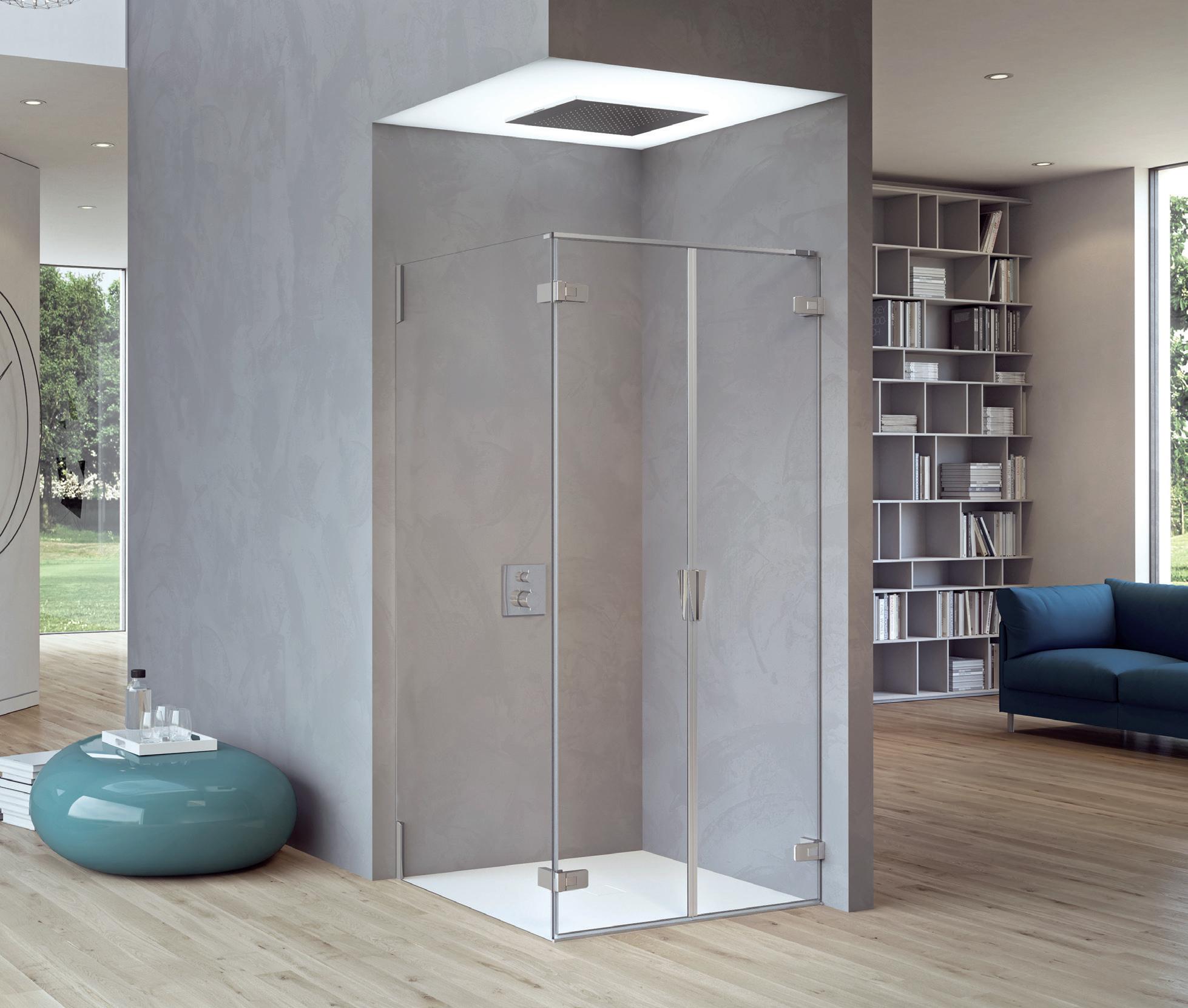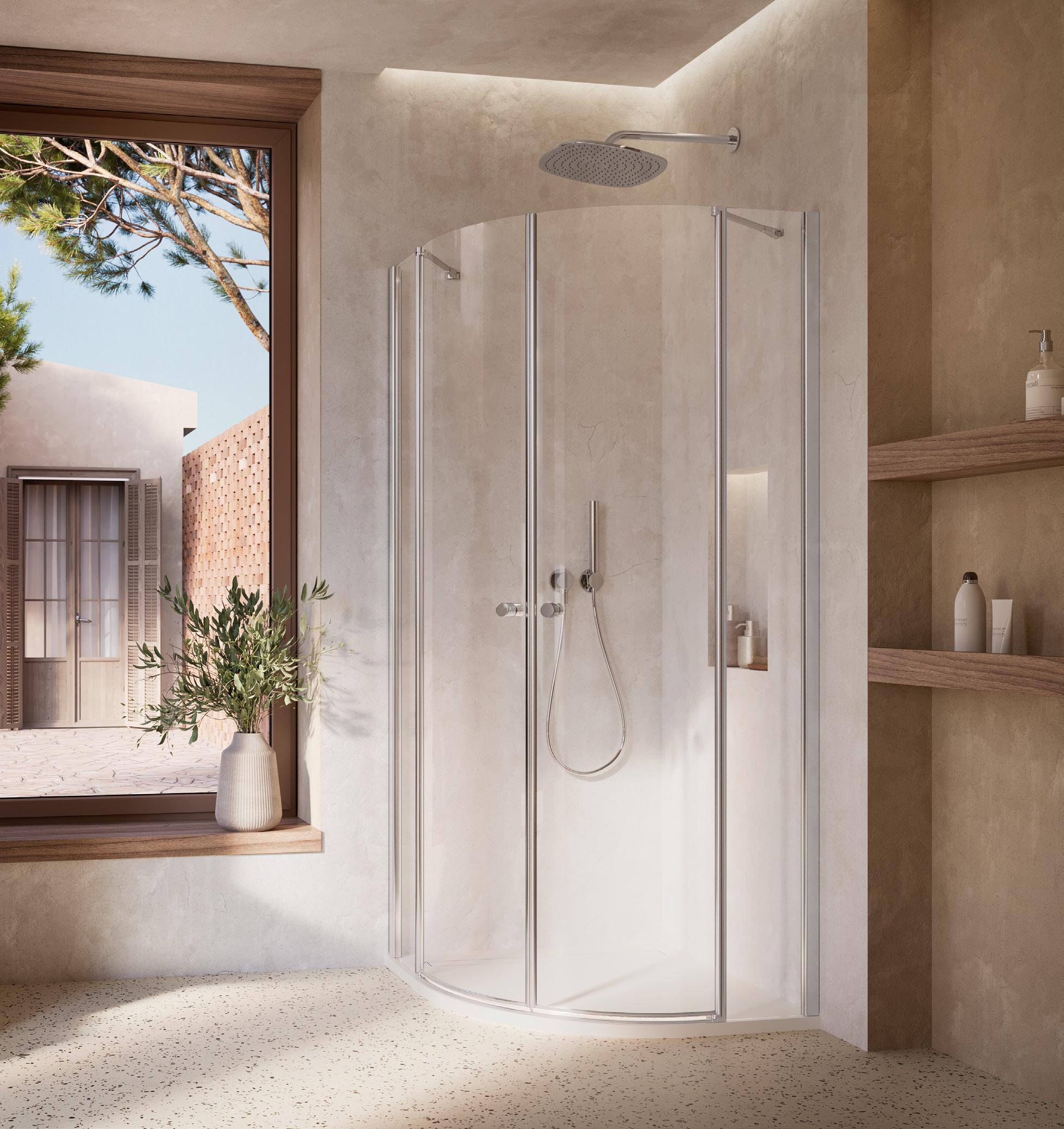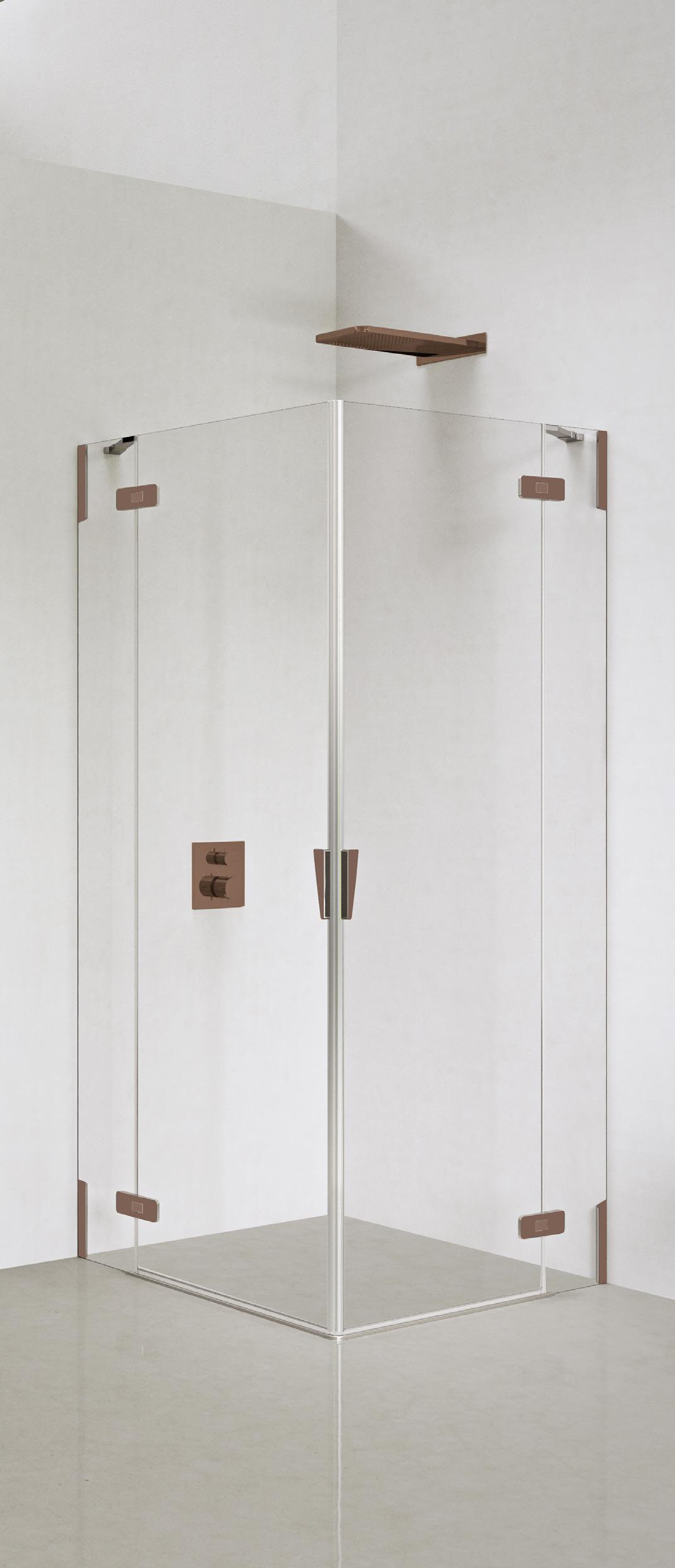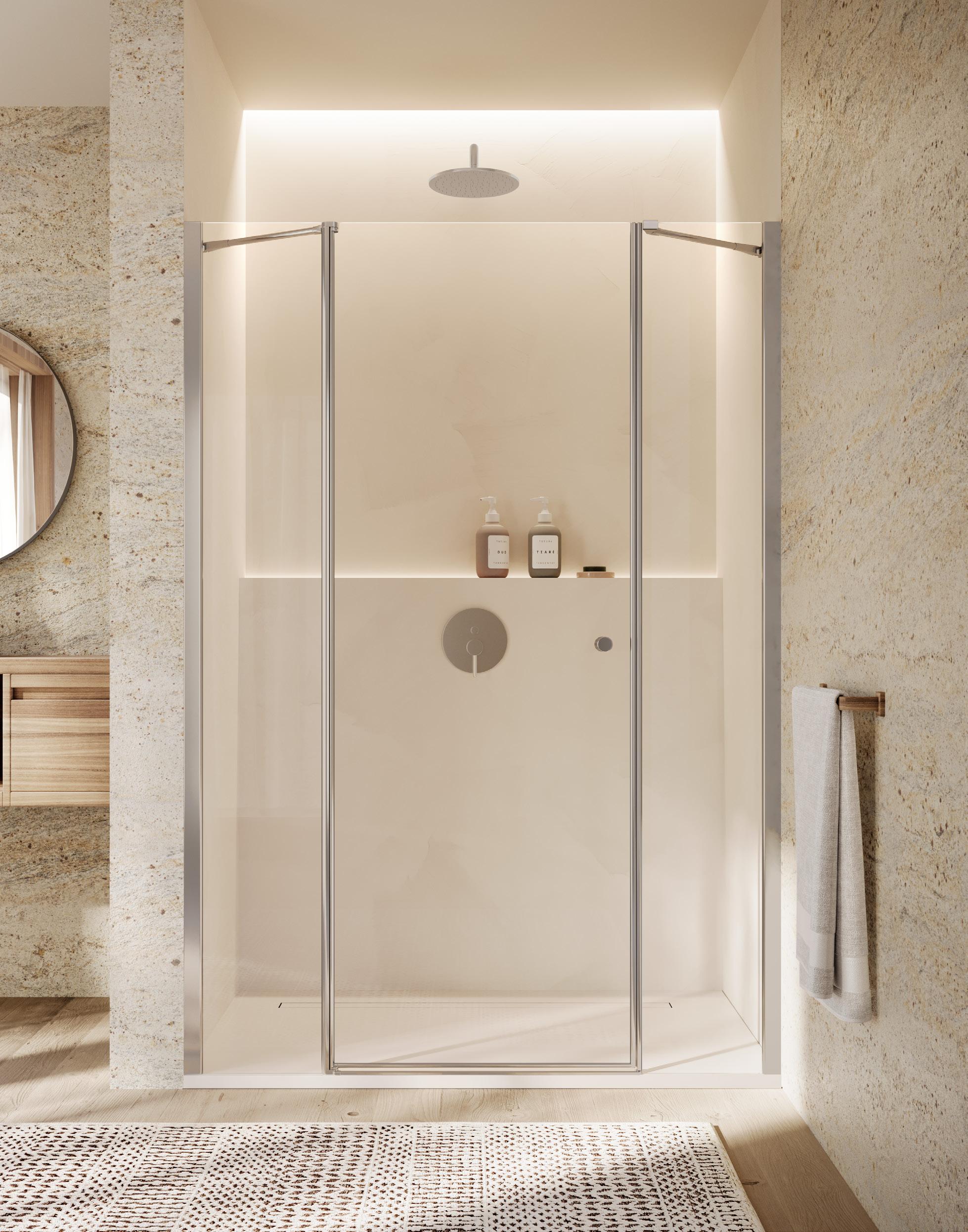 The 180° hinge guarantees absolute flexibility and comfort: the shower enclosure can be opened fully towards both inside and out.