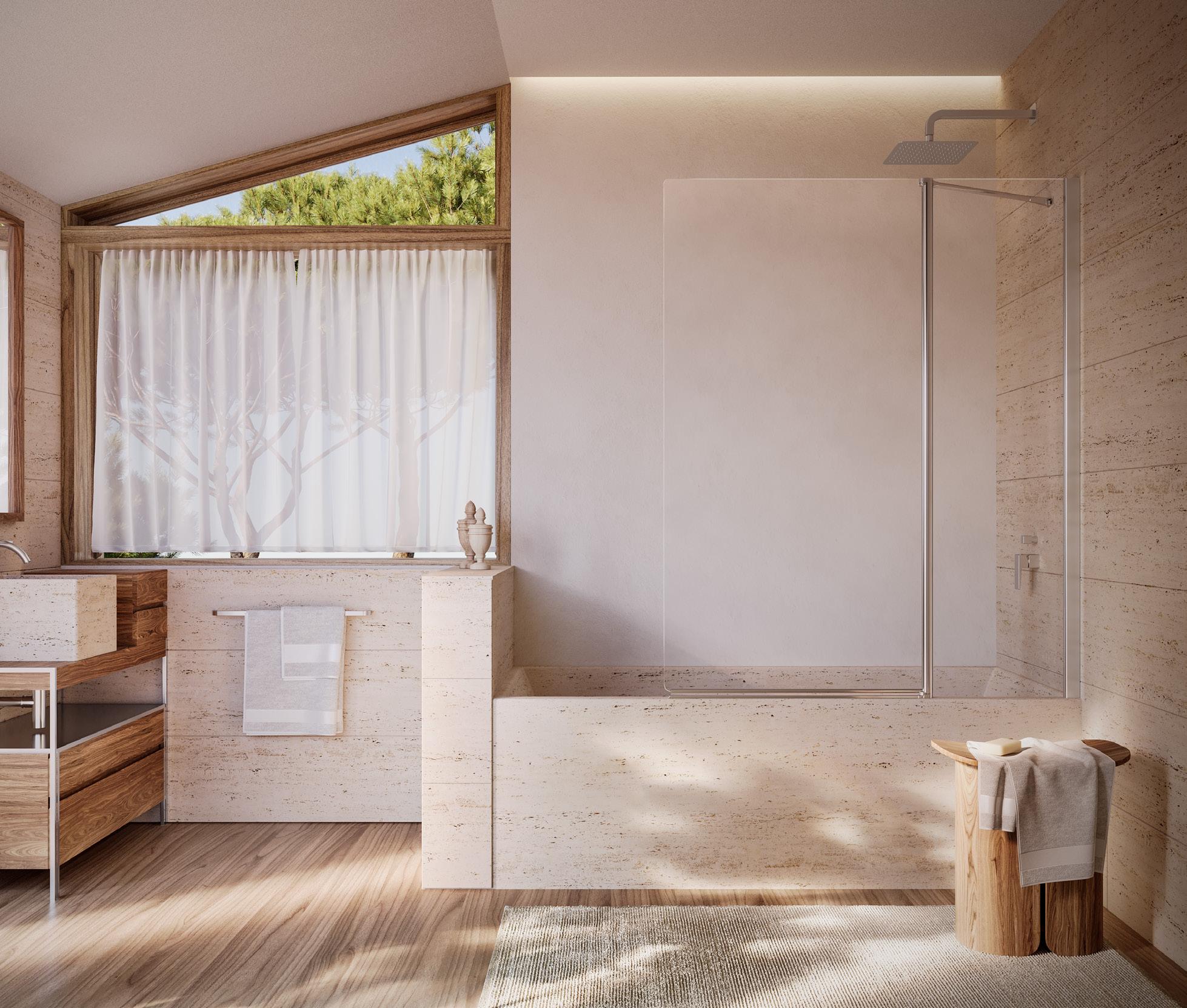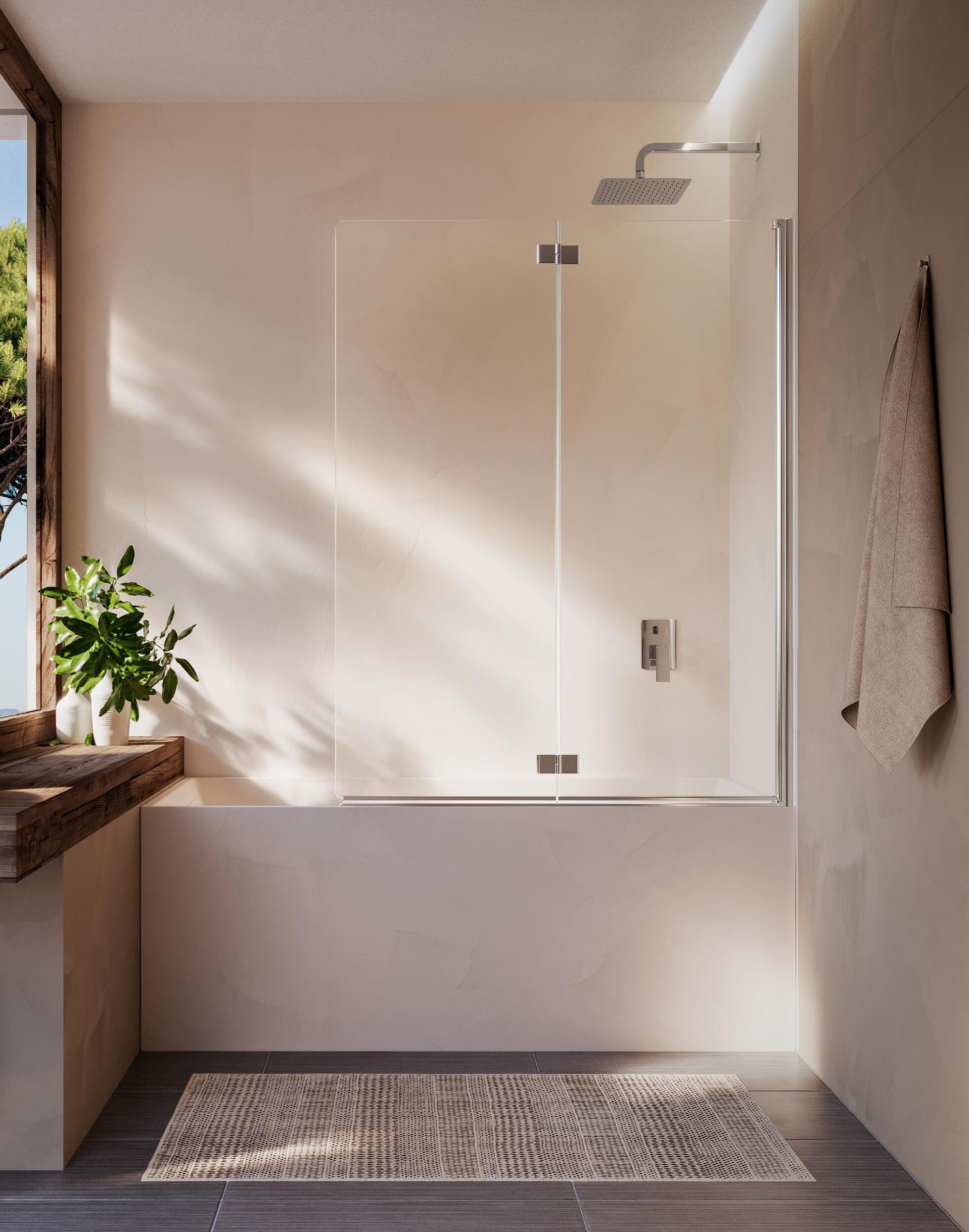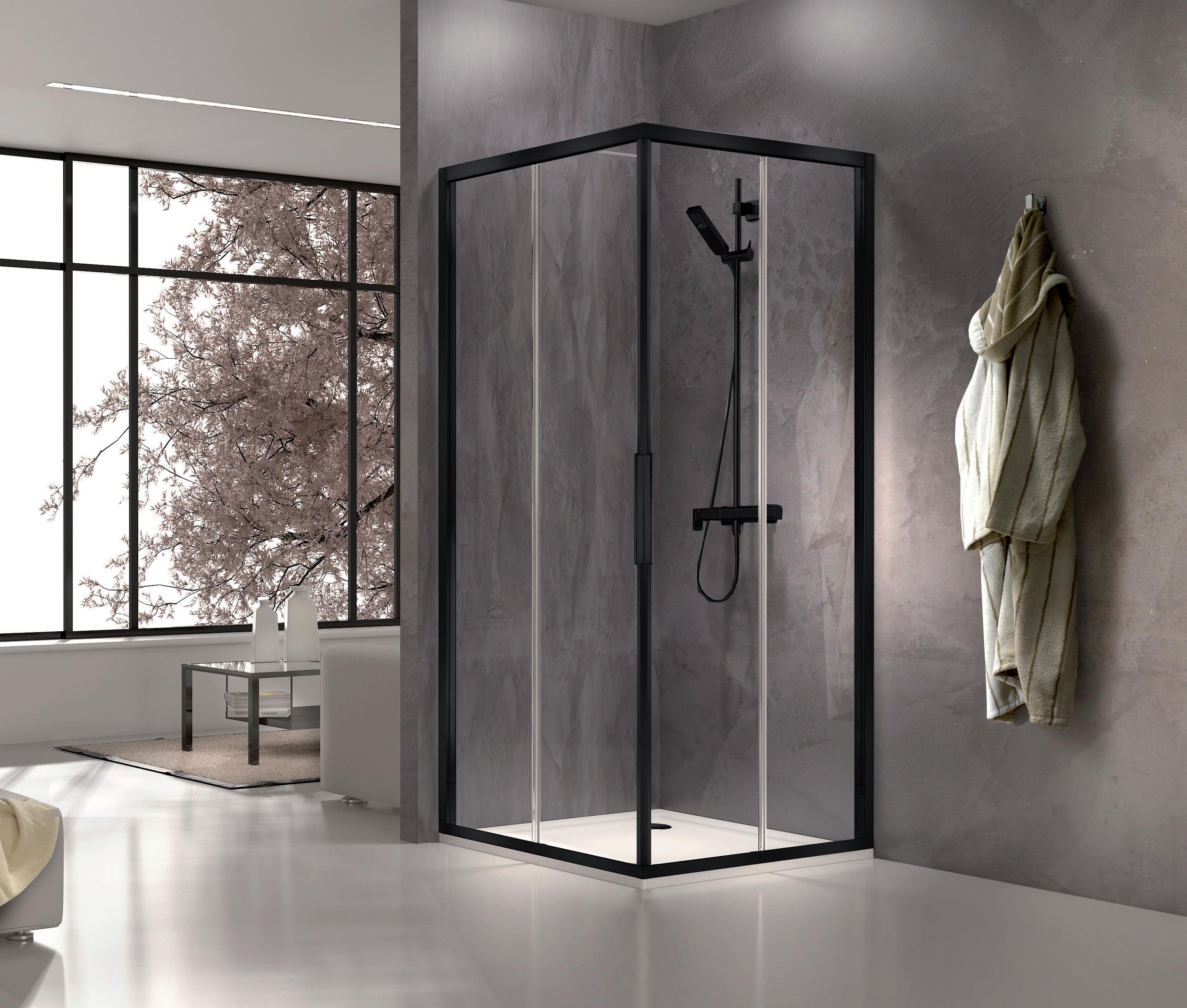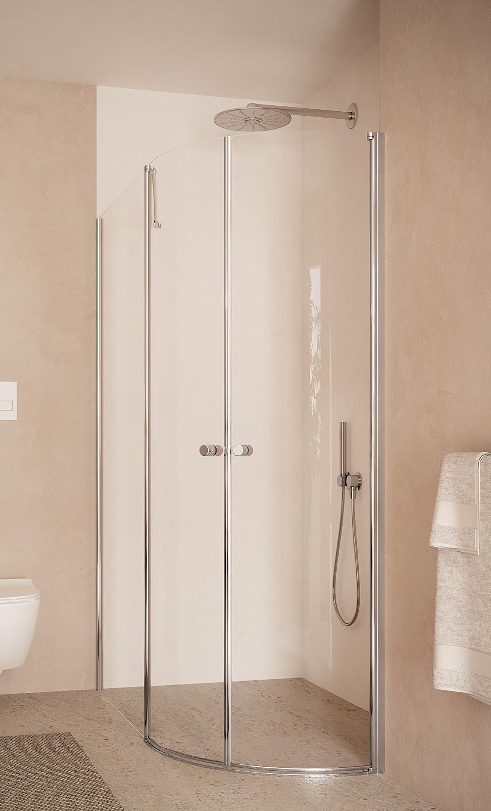 The 180° hinge guarantees absolute flexibility and comfort: the shower enclosure can be opened fully towards both inside and out.