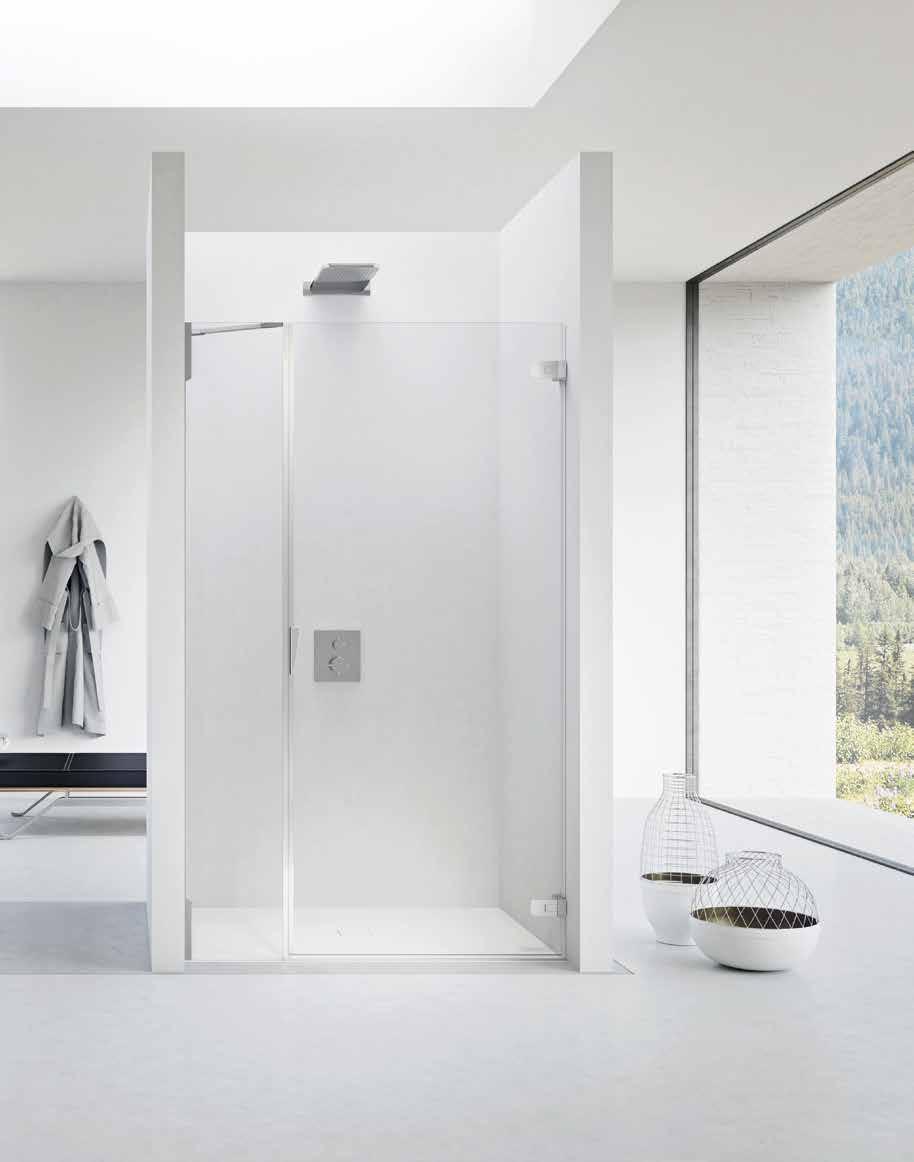 Charnière à 180° La charnière à 180 degrés offre confort maximal et une liberté de mouvement: la cabine de douche peut être complètement ouverte à l’intérieur et à l’extérieur.