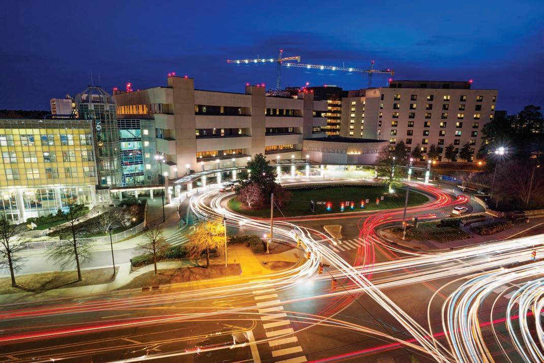 Travels between Parking Garage 3 and remote parking on Hillsborough Rd via Duke Medical Pavilion, Duke Clinic, and Duke Hospital.