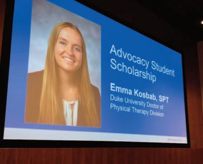 APTA North Carolina awarded the Advocacy Student Scholarship for the 2023-2024 academic year to third-year Emma Kosbab for her demonstrated legislative advocacy for the physical therapy practice through leadership, service, and other efforts.