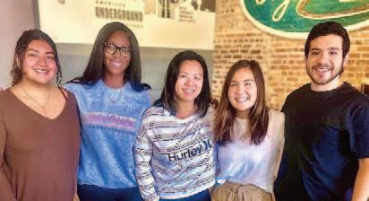 First-years Lytzy Hernandez, Li Chen, and Holly Mackenzie Brown were selected to receive 2023 Rizing Tide Foundation Crest Scholarships. They are pictured here with Rizing Tide Selection Committee Member Moyo Aremu-Cole Tillery '11 and 2022 Rizing Tide Foundation Crest Scholar second-year Said Mendez.