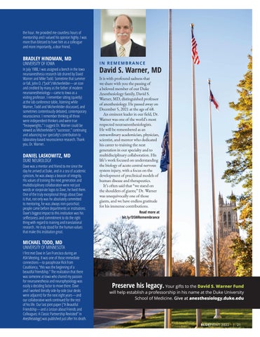 is published once a year by Duke Anesthesiology. This issue was published in August 2022. Your comments, ideas and letters are welcome.