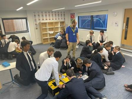 The second half of the morning, the focus shifted to teamwork, leadership, and collaborative learning. Split up into groups of 7, teams then had to complete an ‘Escape Room’ Box. Students were introduced to the escape boxes work and the relevant theme – in this case, it was a bank robbery! The boxes had a series of compartments, locked with a padlock. Working in small groups the students then had crack codes, work out riddles, solve puzzles and as a result gain access to the next compartment. The groups race against the clock, to reunite with information, to unravel the mystery. Classroom Escapes are an immersive learning experience that unlock communication and perseverance skills as well working collaboratively and as part of a team – all key skills needed for success in the Sixth Form. It was a unique learning experience, with lots of fun and all the teams cracked the boxes within the 2-hour time limit.