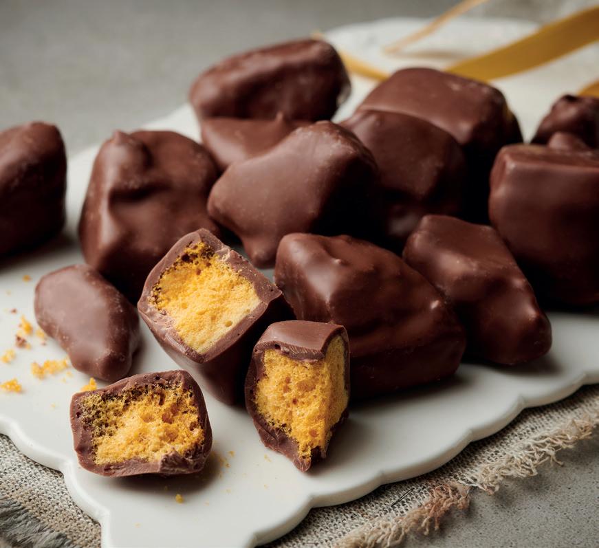 Handcrafted in small batches with real honey, our golden honeycomb is broken by hand into bite-sized nuggets and twice enrobed in the finest Colombian milk chocolate.