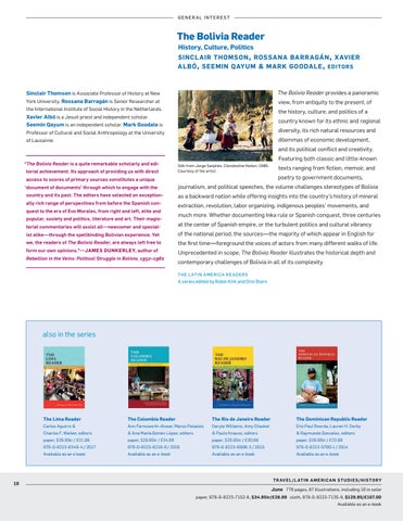 ally rich range of perspectives from before the Spanish conquest to the era of Evo Morales, from right and left, elite and popular, society and politics, literature and art. Their magisterial commentaries will assist all—newcomer and special-